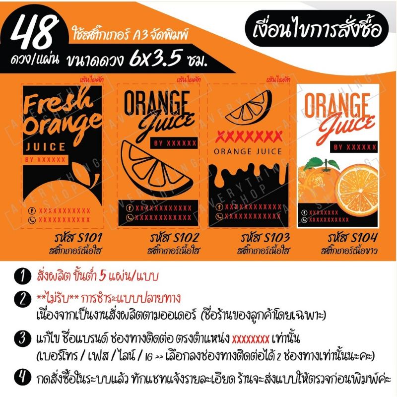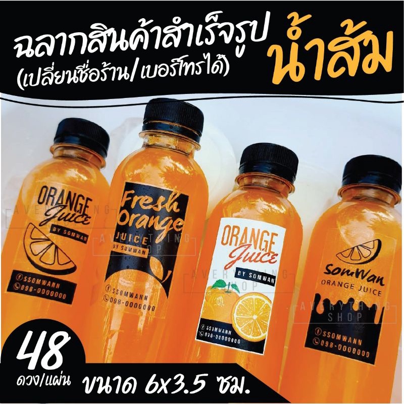 (ทักแชทก่อนสั่ง) ฉลากสินค้าสำเร็จรูป น้ำส้ม น้ำส้มสด น้ำส้มคั้น (เปลี่ยนชื่อ เพิ่มเบอร์โทรได้)