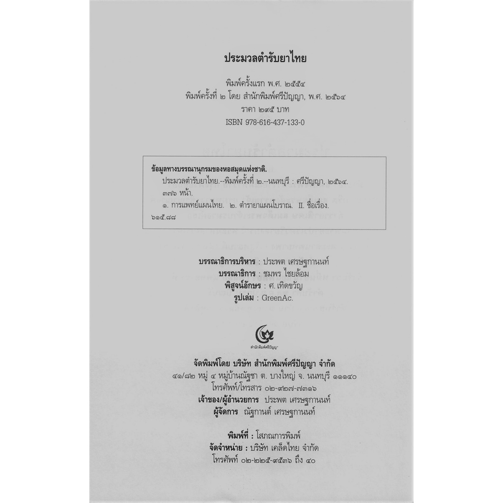 ประมวลตำรับยาไทย (ปกอ่อน) (ศรีปัญญา)