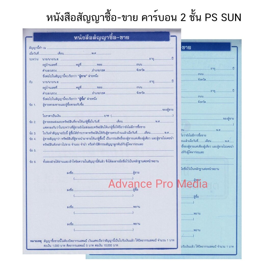 PS SUN หนังสือสัญญาซื้อ-ขาย คาร์บอน 2 ชั้น (1 เล่มมี 10 ชุด ราคาต่อ 1 เล่ม )