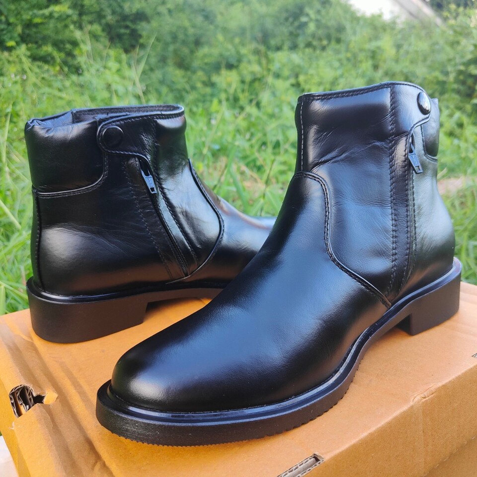 ฮาฟ รหัส 617 ซิปเดี่ยว สูง 5นิ้ว หนังนิ่มขัดเงา หนังวัวแท้ แนะนำ+1ไซซ์