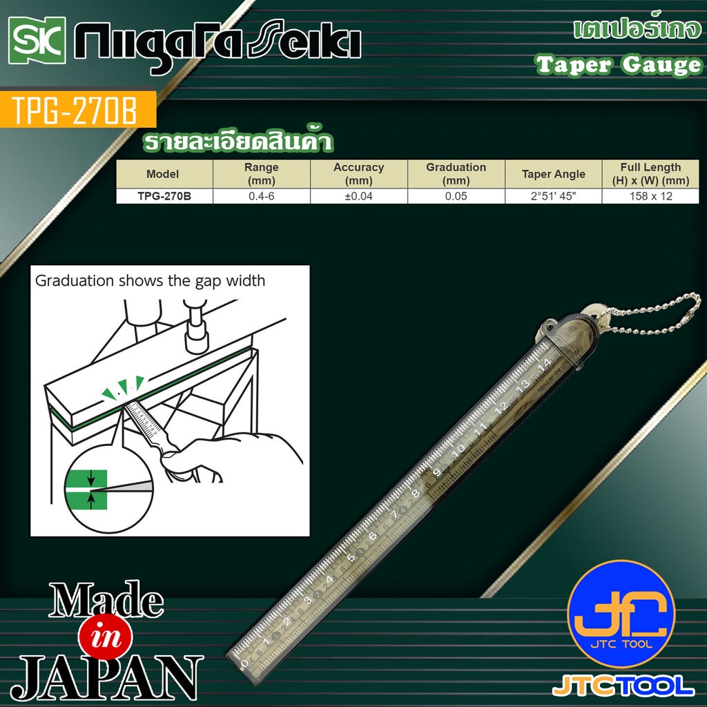 Niigata Seiki SK เตเปอร์เกจหน้าตัด ขนาด 0.4 - 6มิล รุ่น TPG-270B - Taper Gauge No.TPG-270B