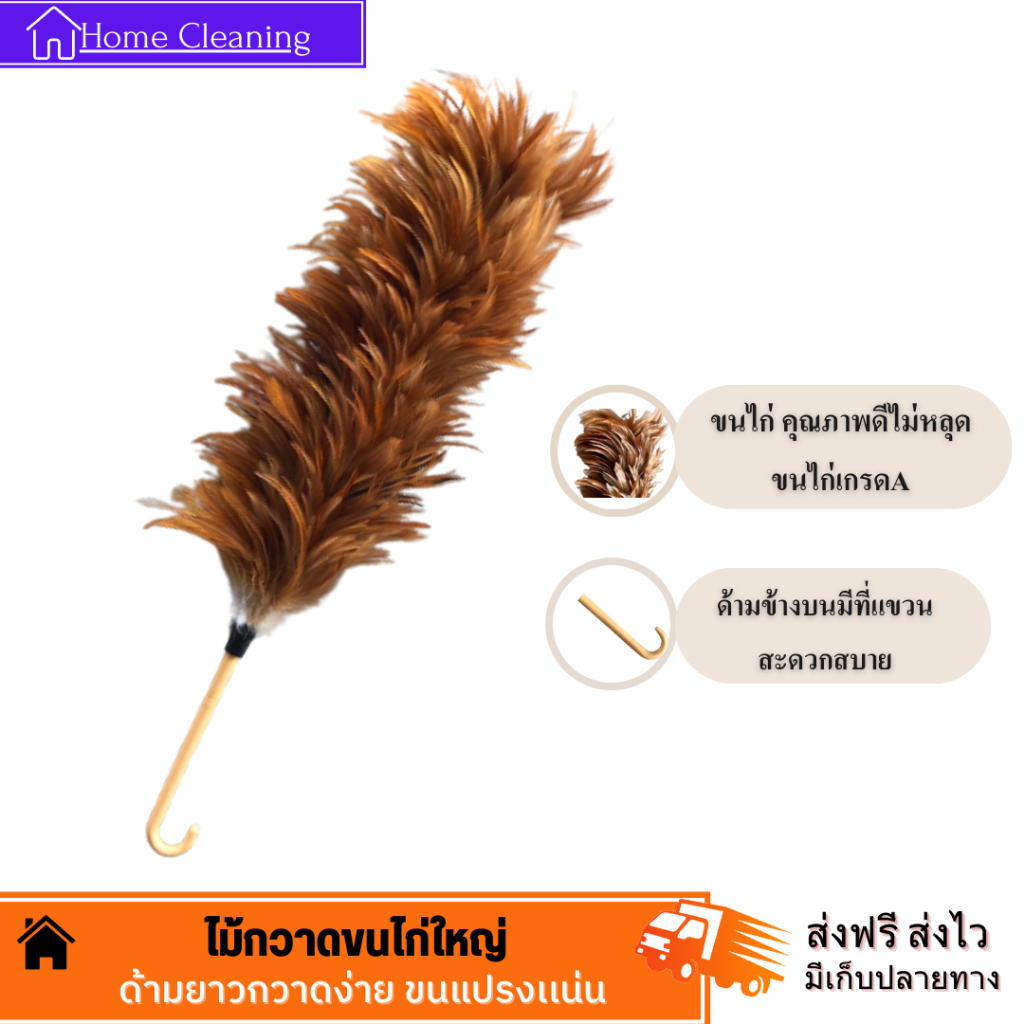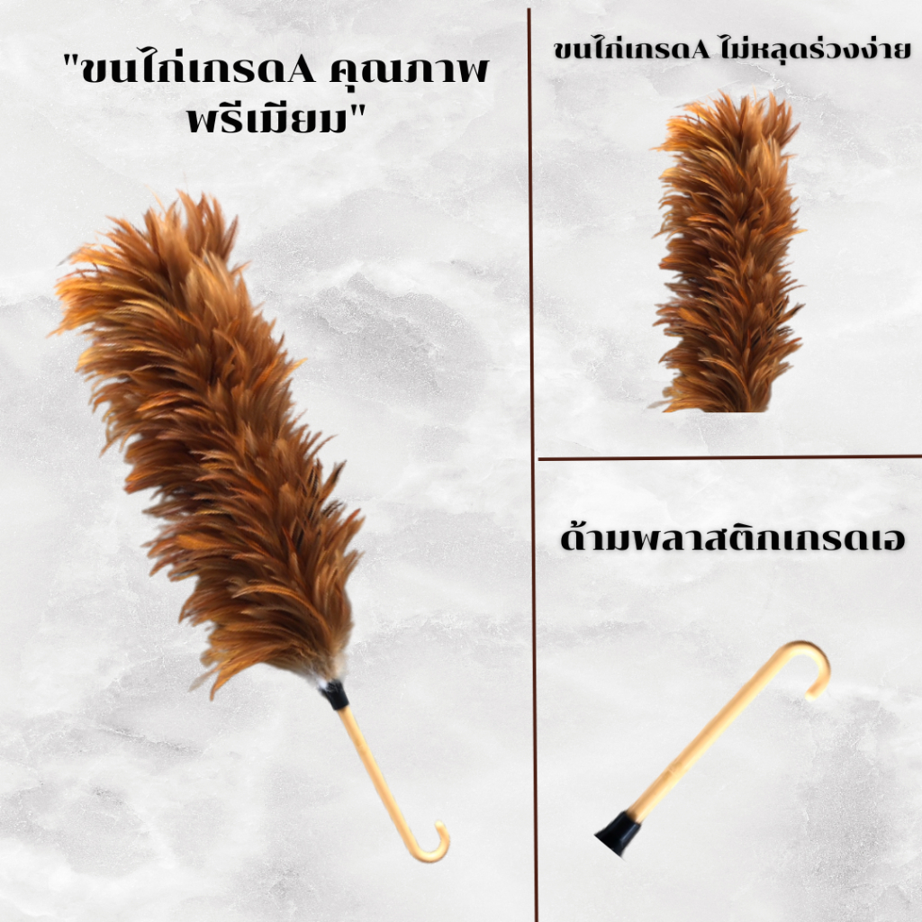 ไม้ปัดขนไก่อย่างดี เกรดA ด้ามจับพลาสติก ไม้ปัดฝุ่น ไม้ขนไก่