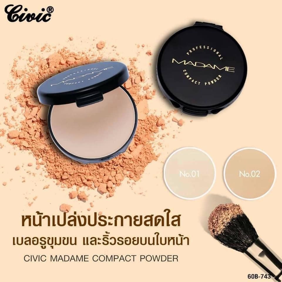 Civic Madame Compact Powder #743 : ซีวิค มาดาม คอมแพค พาวเดอร์ แป้งพัฟ แป้งมาดาม x 1 ชิ้น beautybakery