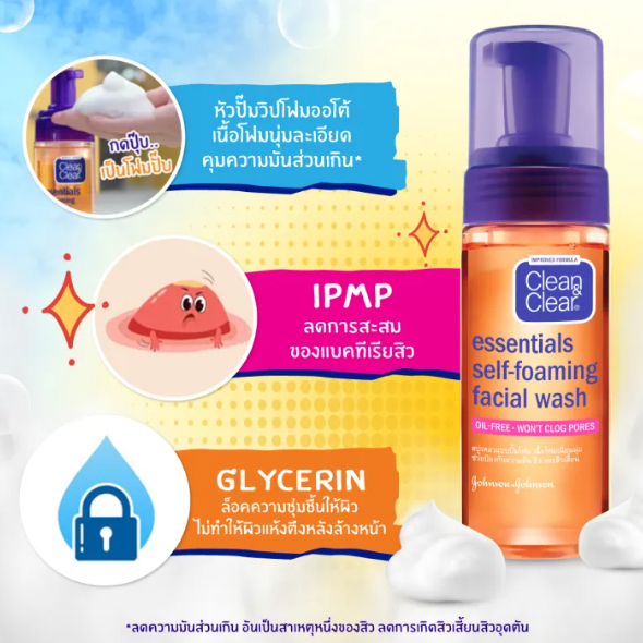 คลีน แอนด์ เคลียร์ โฟมล้างหน้า เซลฟ์โฟมมิ่ง เฟเชียล วอช Clean & Clear Essentials Self Foaming Facial Wash