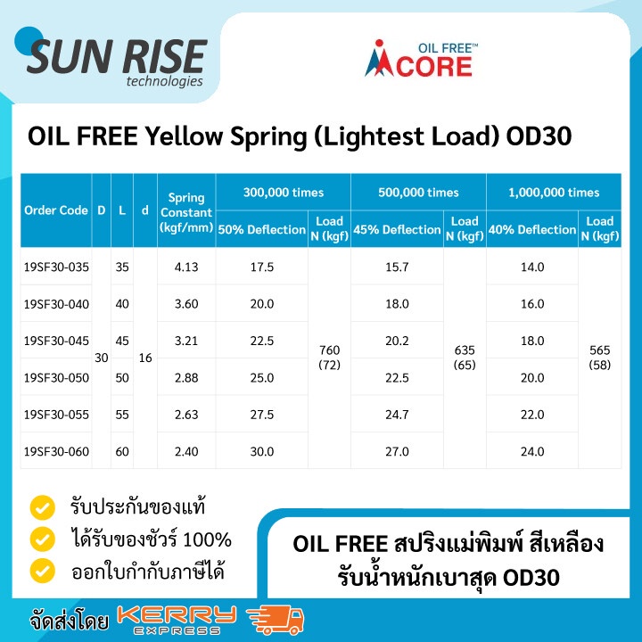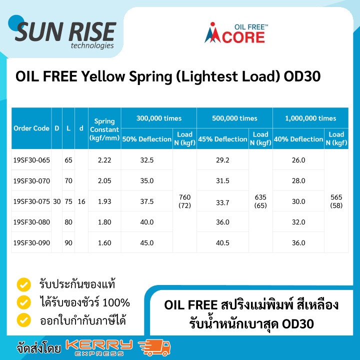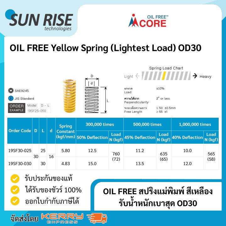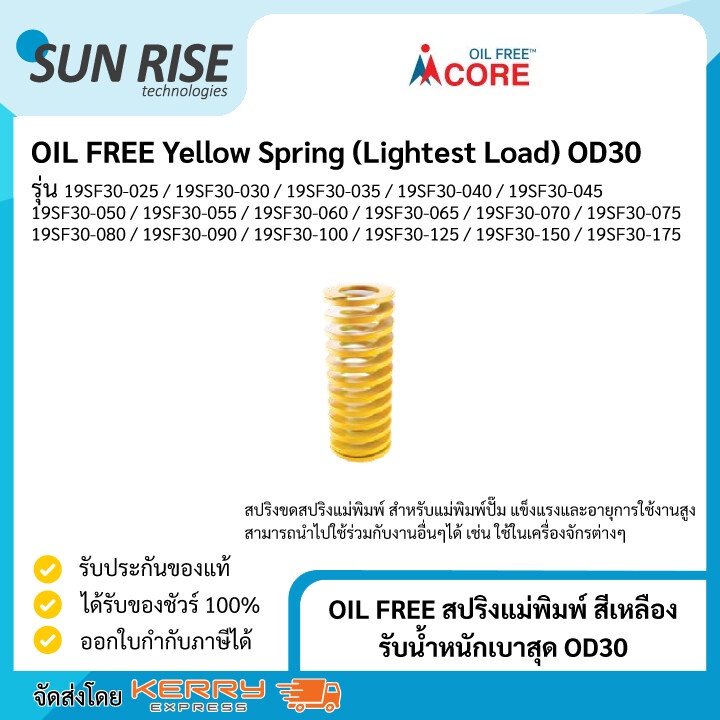 OIL FREE สปริงแม่พิมพ์ สีเหลือง รับน้ำหนักเบาสุด OD30 Yellow Spring (Lightest Load) OD30