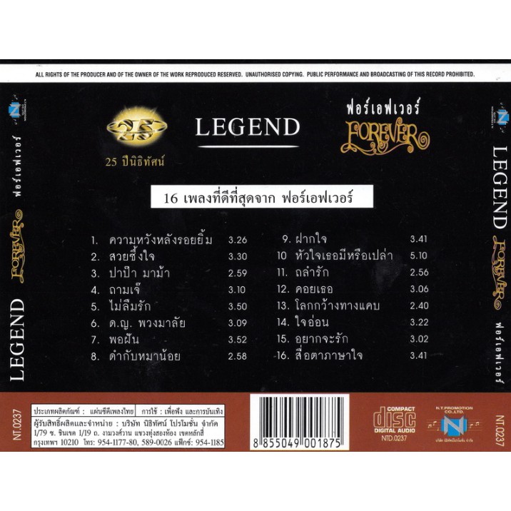 แผ่นซีดี เพลงไทย ฟอร์เอฟเวอร์ 16 เพลงที่ดีที่สุด