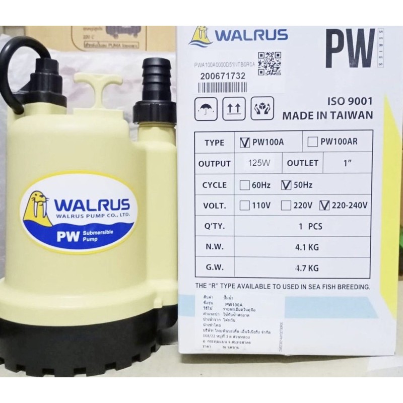 🔥ส่งเร็ว ถูกสุด🔥 WALRUS ปั๊มแช่ ไดโว่ รุ่น PW-100A ท่อ 1 นิ้ว กำลัง 125 วัตต์ ประกัน 1 ปี ปั้มแช่ ปั้มดูด ตราแมวน้ำ
