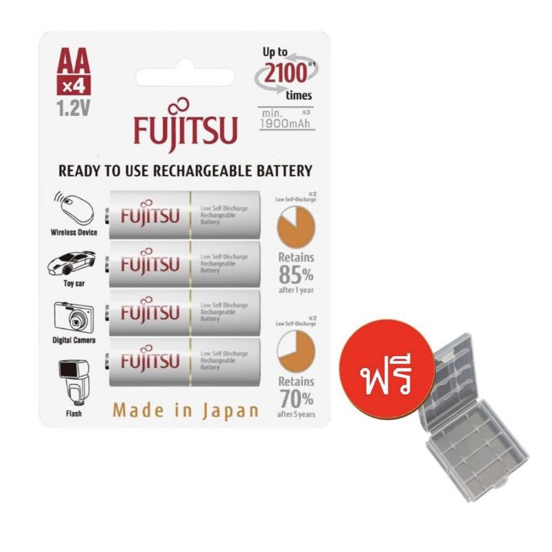ถ่านชาร์จ Fujitsu ขนาดAA 1.2V แพค4ก้อน ของแท้แถมฟรีกล่องใส่ถ่าน
