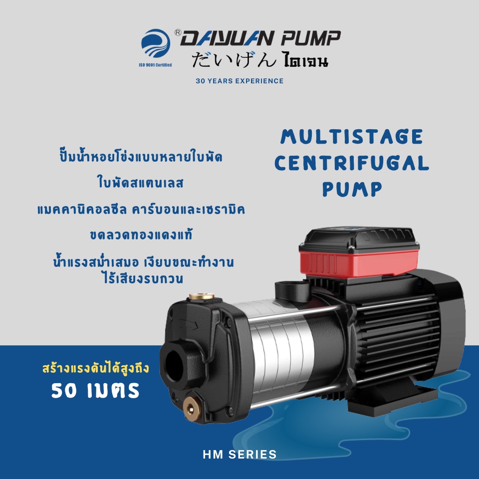 ปั้มน้ำสแตนเลส แรงดันสูง ชนิดหลายใบพัด 5 - 6ใบ กำลัง 1000-1300w ทางดูด 1.1/4" ออก 1" DAYUAN รุ่น HM