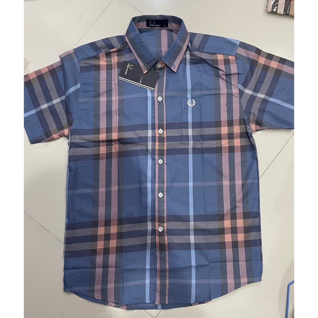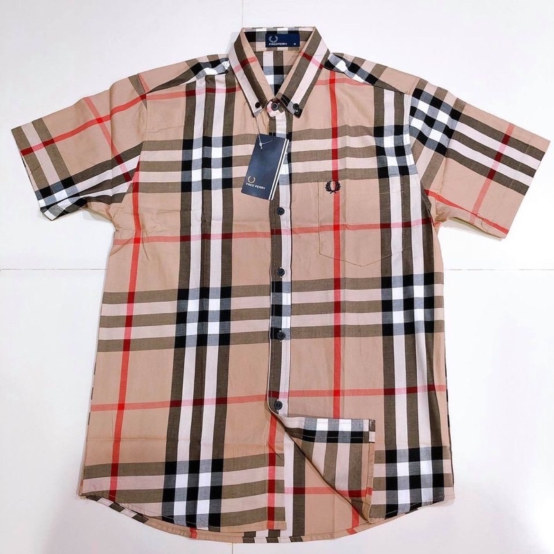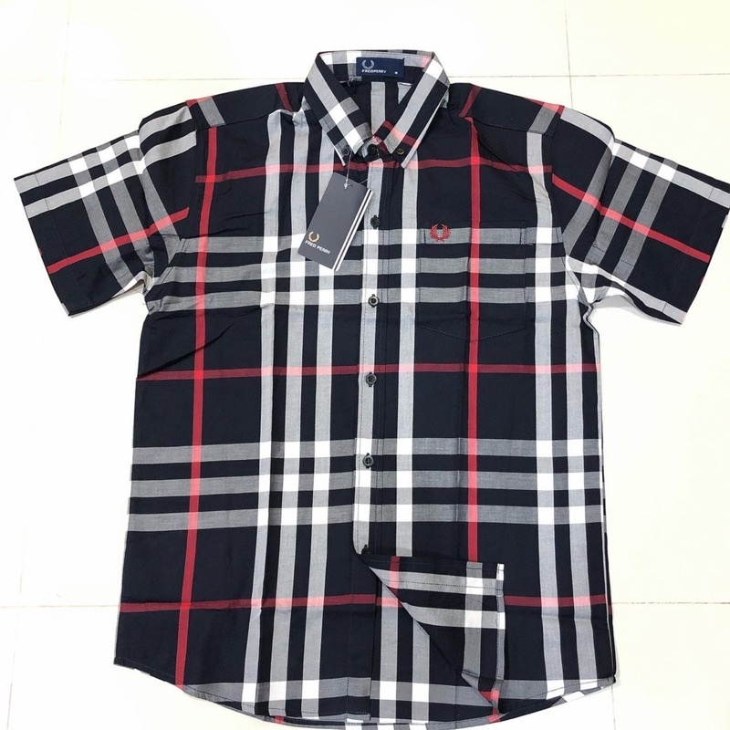 fred perryแขนสั้นชายผ้าcottonอย่างดีมีกระเป๋าอกมีกระดุมปก