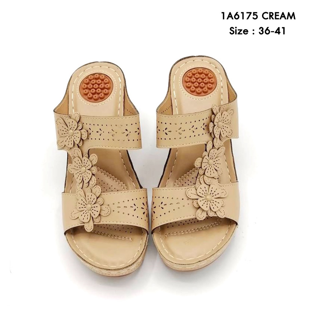 prettycomfort รองเท้าเพื่อสุขภาพ แตะส้นสูงแบบสวม งานเย็บมือทนทาน สวมใส่สบาย น้ำหนักเบามาก 1A6175