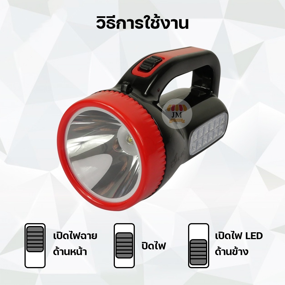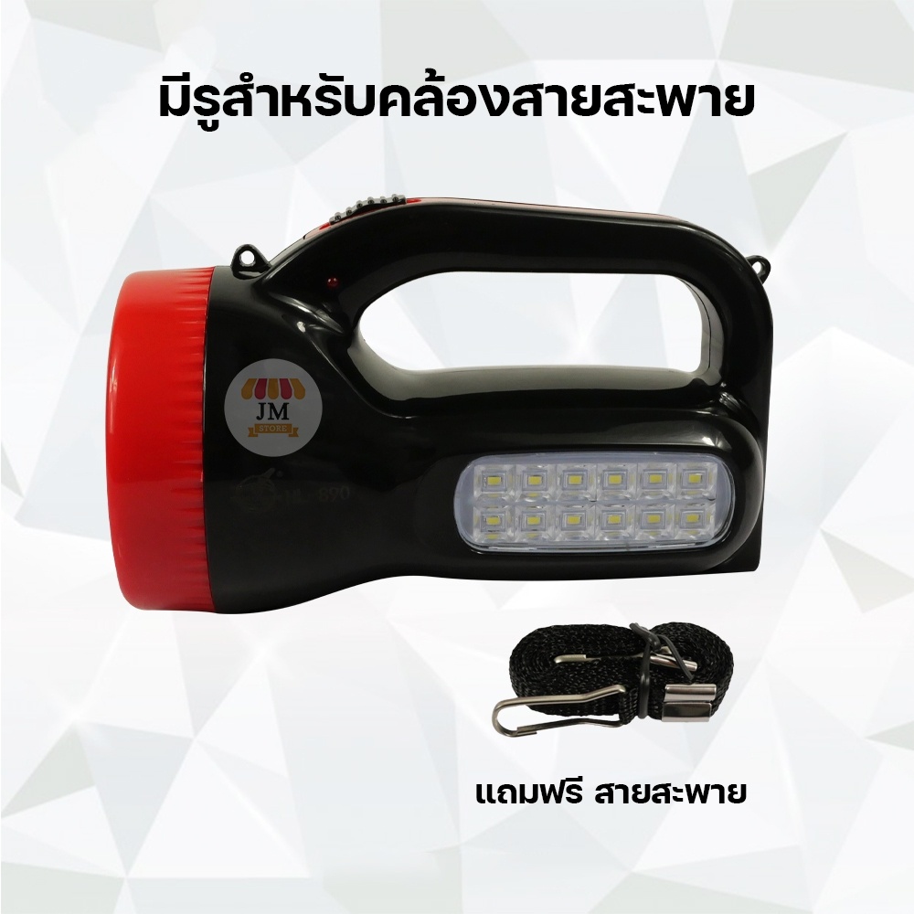 ไฟฉายแรงสูง HL-890 LED 5W+1.2W ไฟเอนกประสงค์ แสงสีขาว ชนิดชาร์จแบตเตอรี่ เดินป่า แคมป์ปิ้ง สว่าง น้ำหนักเบา Flashlight