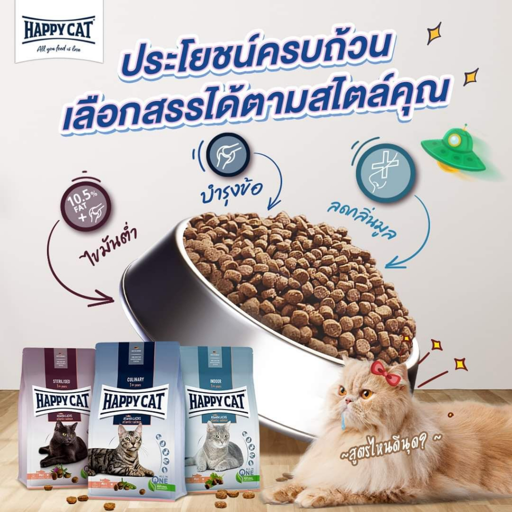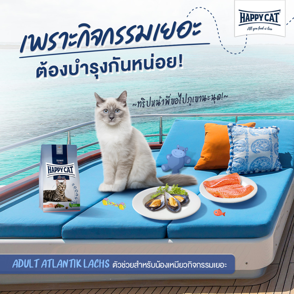 HAPPY CAT Supreme Atlantik Lachs อาหารแมวโต กิจกรรมเยอะ สูตรเนื้อสัตว์ปีกและปลาแซลมอน 4 Kg