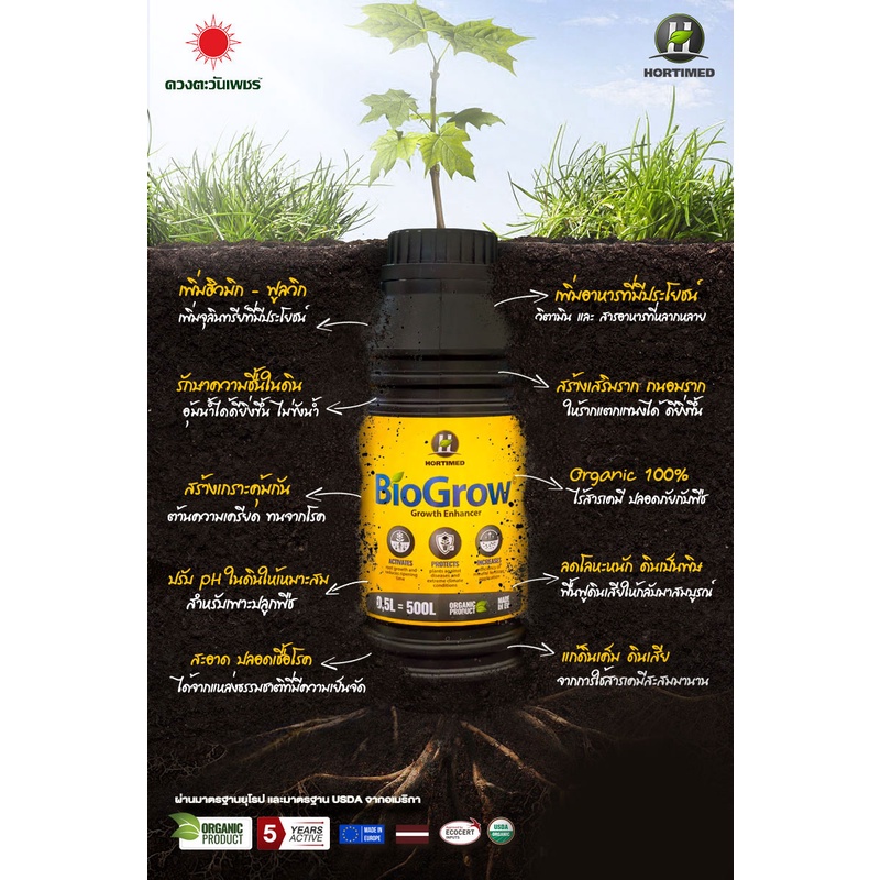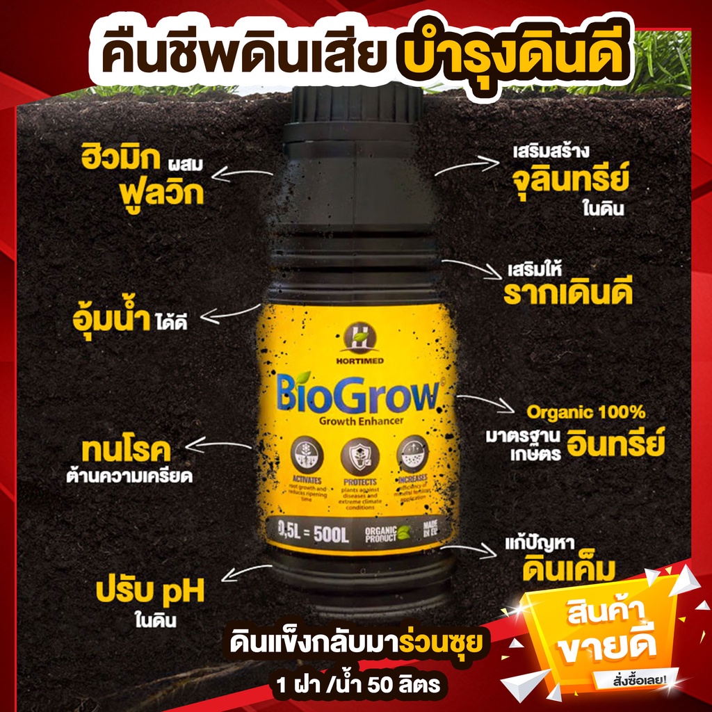 Biogrow Liquid 0.5 ลิตร แก้ดินแข็งดินเสื่อม บำรุงดินดี