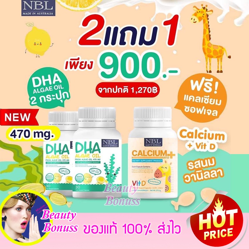 ลดเพิ่ม20%🔥 NBL DHA Algae Oil 470mg. ดีเอชเอ อัลกัลออยล์ NBL Calcium +VitD3 แคลเซียม NBL Elderberry