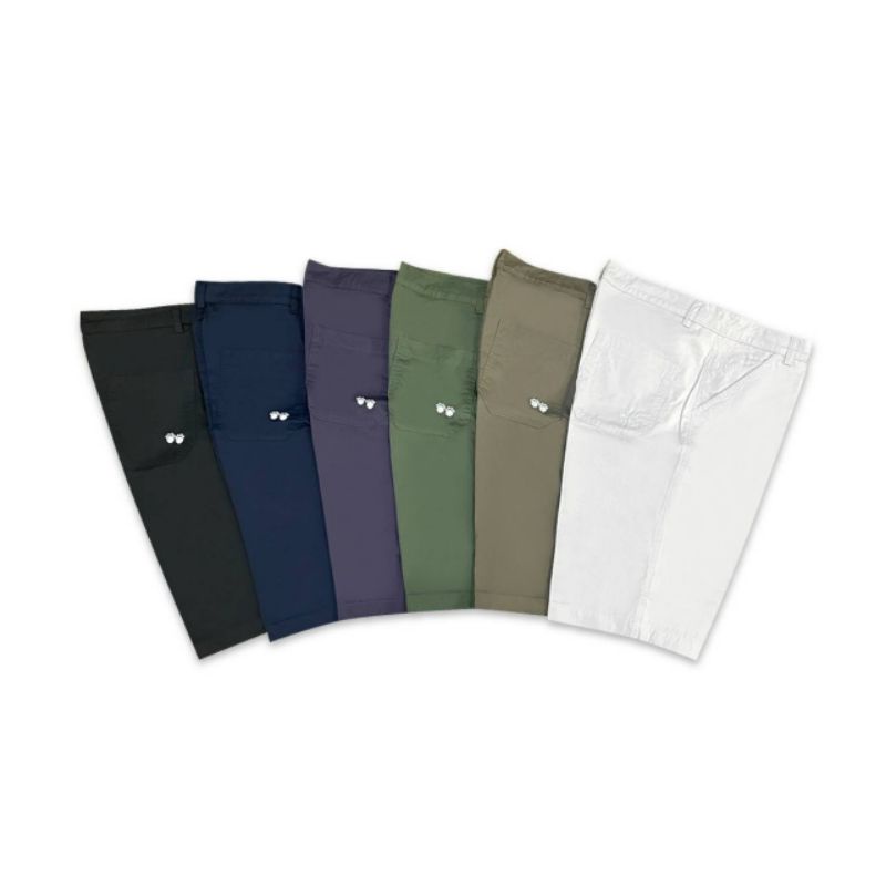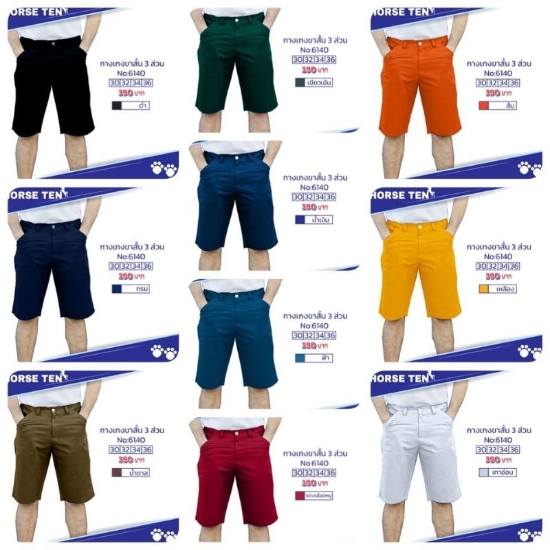 Horse ten กางเกงเอวกระดุม ขาสั้น 3 ส่วน ทรงตรง กระเป๋าหลังแปะ #6140
