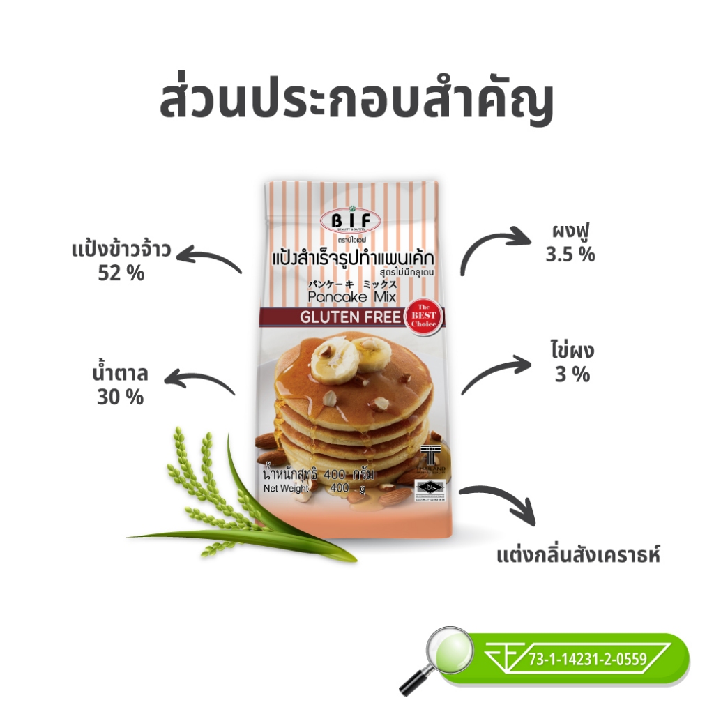 (ยกลัง) แป้งทำแพนเค้กสำเร็จรูป (Gluten Free) ตรา BIF 400 g. x 12 ถุง