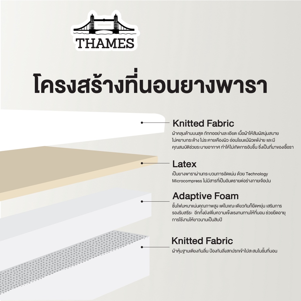 Thames [10นิ้ว] ที่นอนยางพาราแท้100% Teddington แก้ปวดหลัง latex mattress hybrid