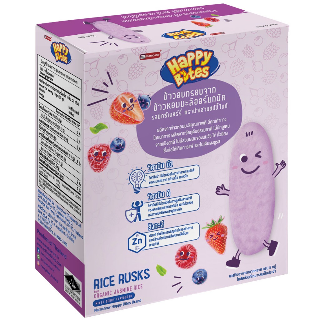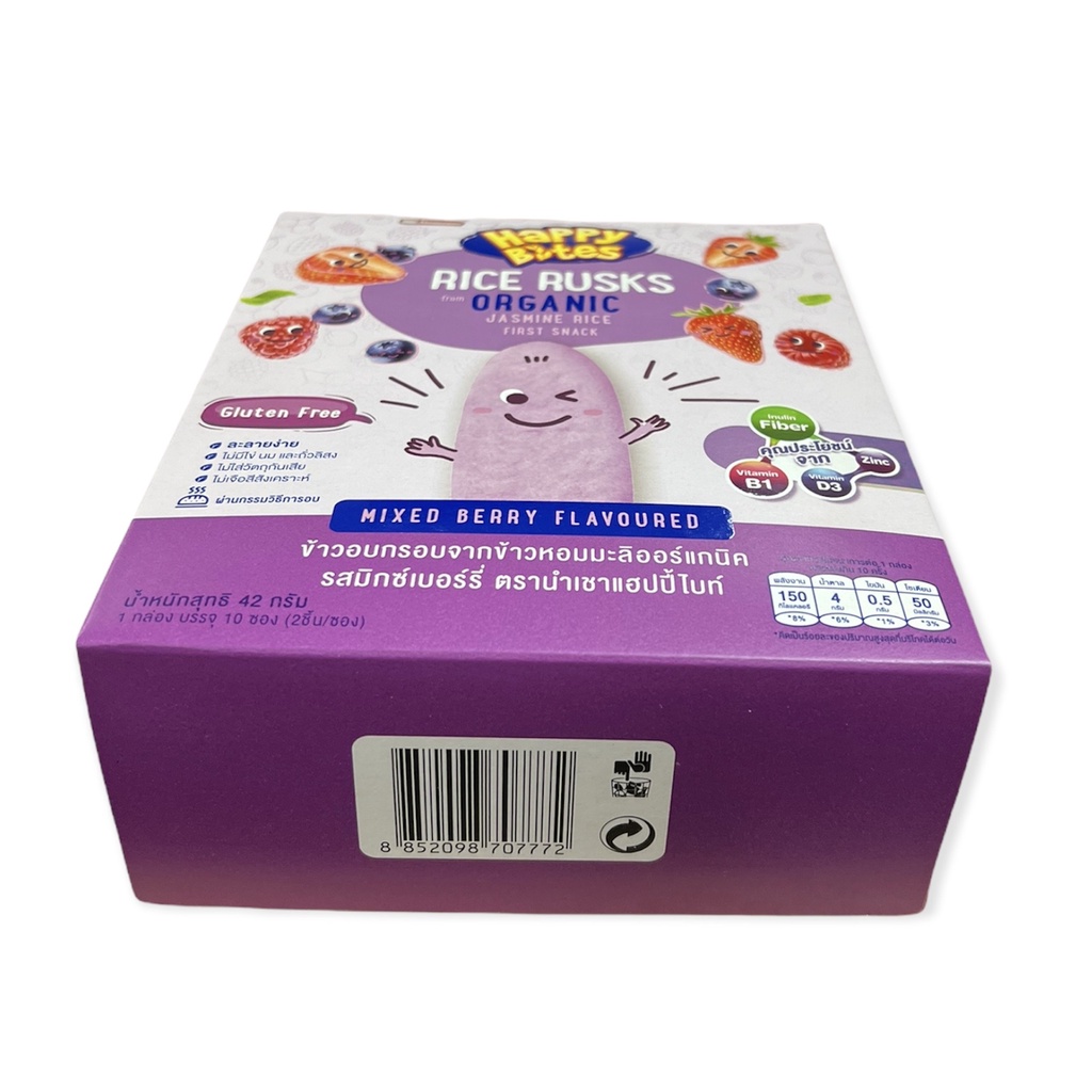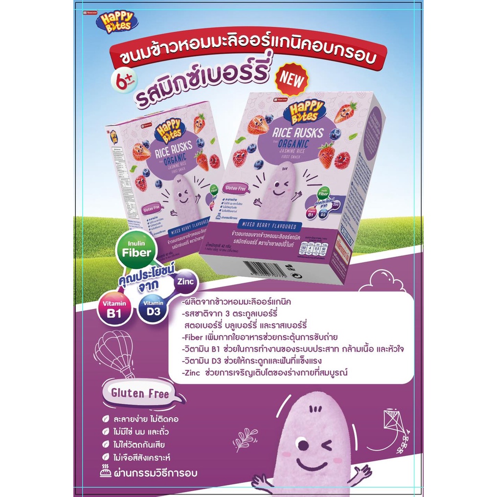 Happy Bites ขนมข้าวอบกรอบสำหรับเด็ก รสมิกซ์เบอร์รี่ ขนาด 42 กรัม (Happy06) organic jasmine rice irst snack Mixed berry