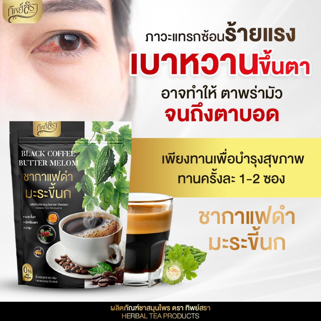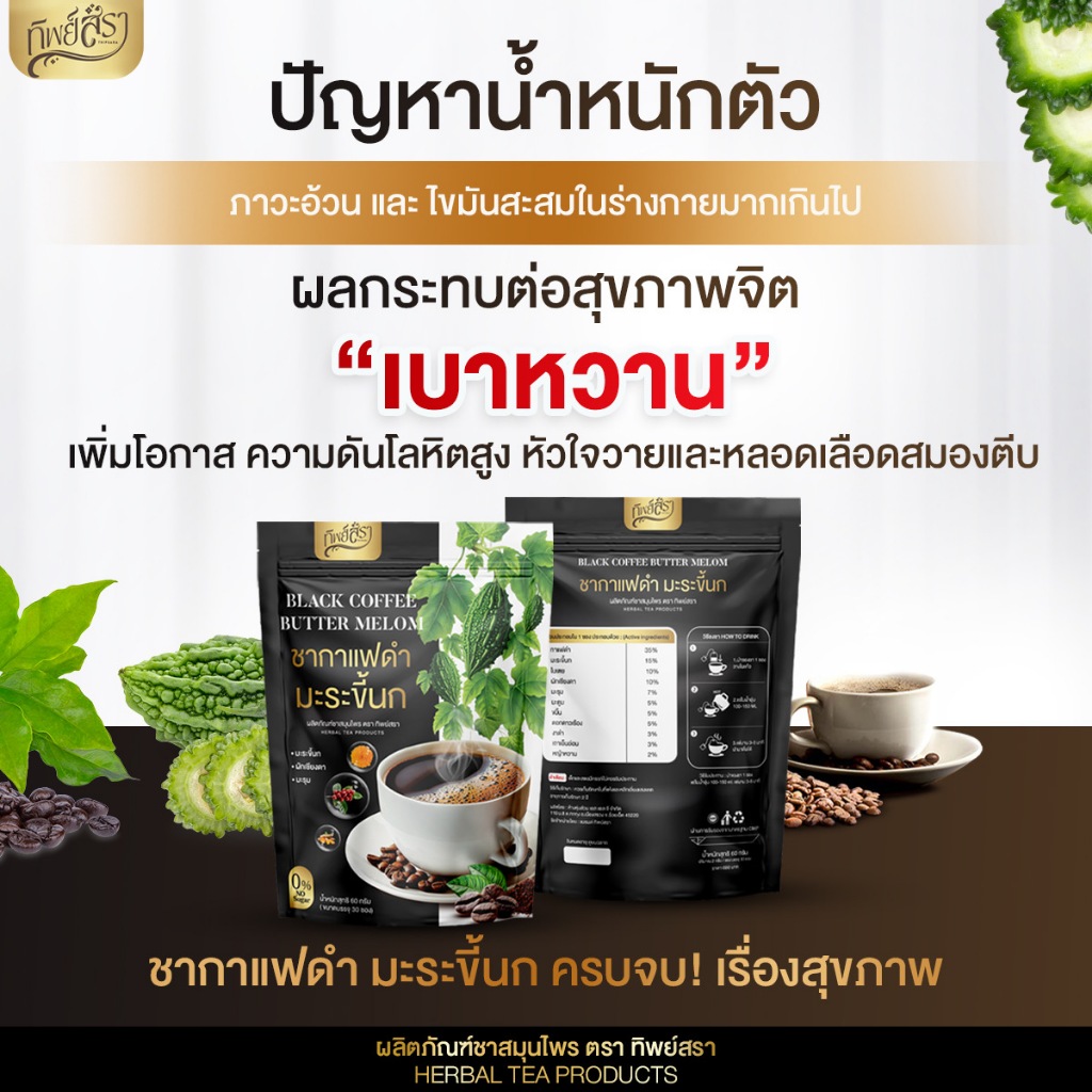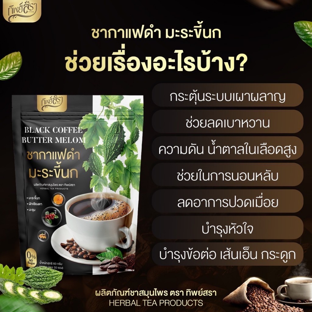 (สาขา กทม.) ชากาแฟดำ ชามะระขี้นก ทิพย์สรา ชาสมุนไพร เพื่อสุขภาพ เบาหวาน ไขมันความดัน (1 ห่อ 30 ซอง)