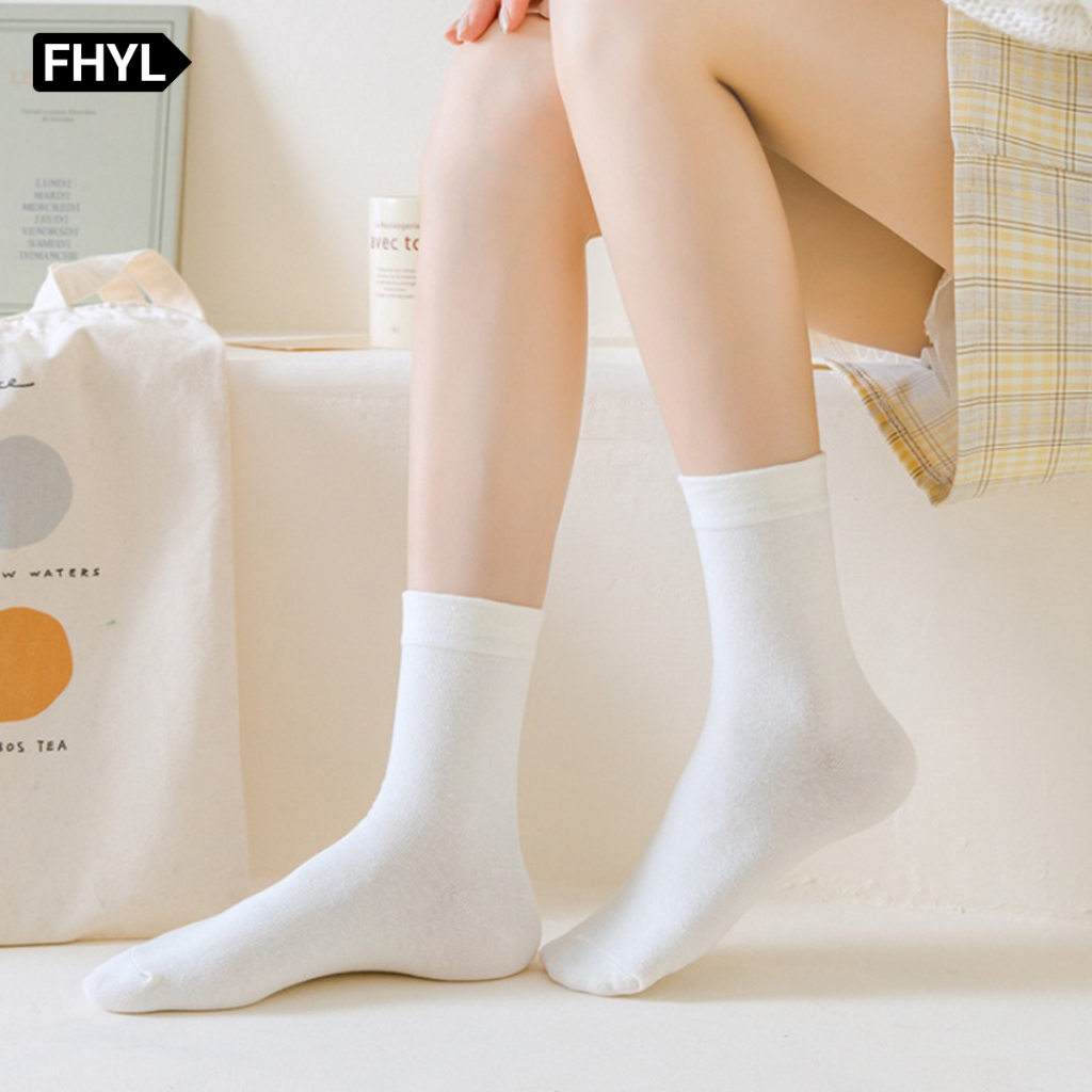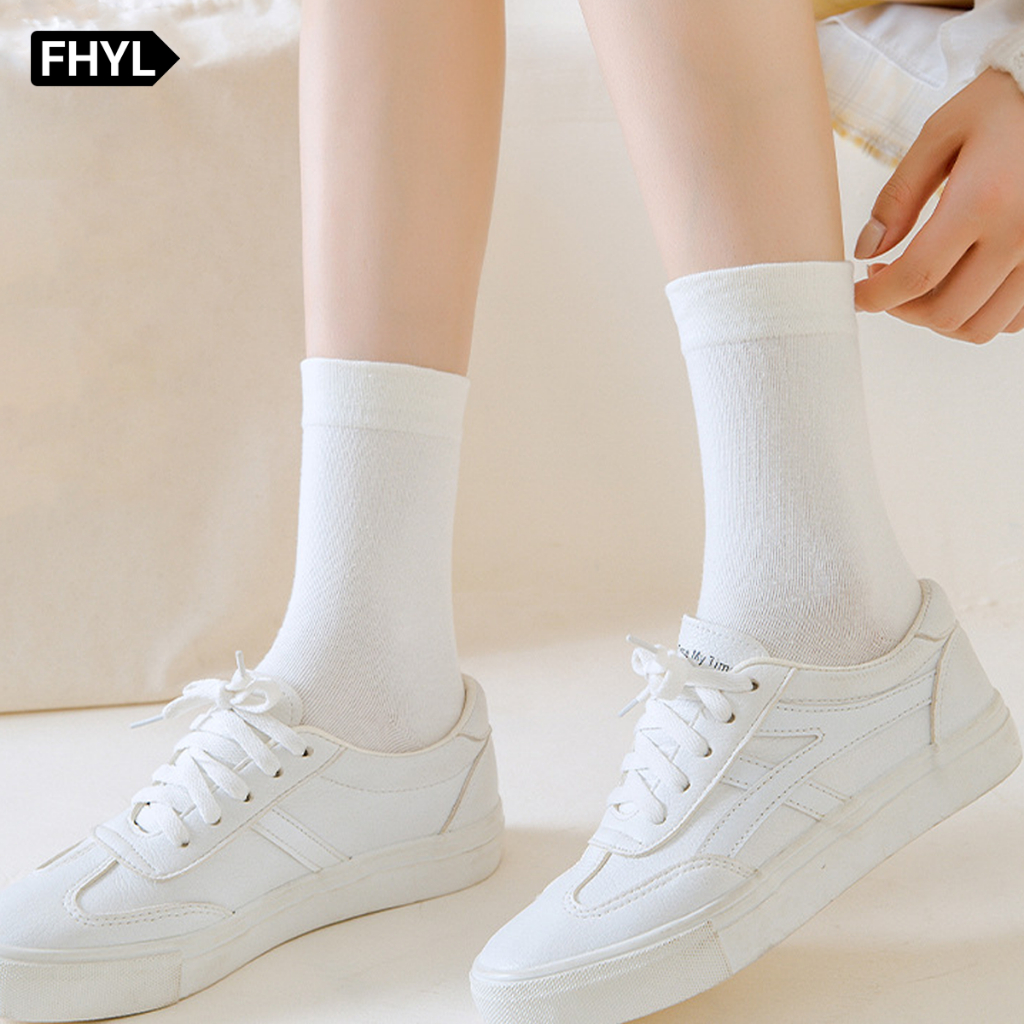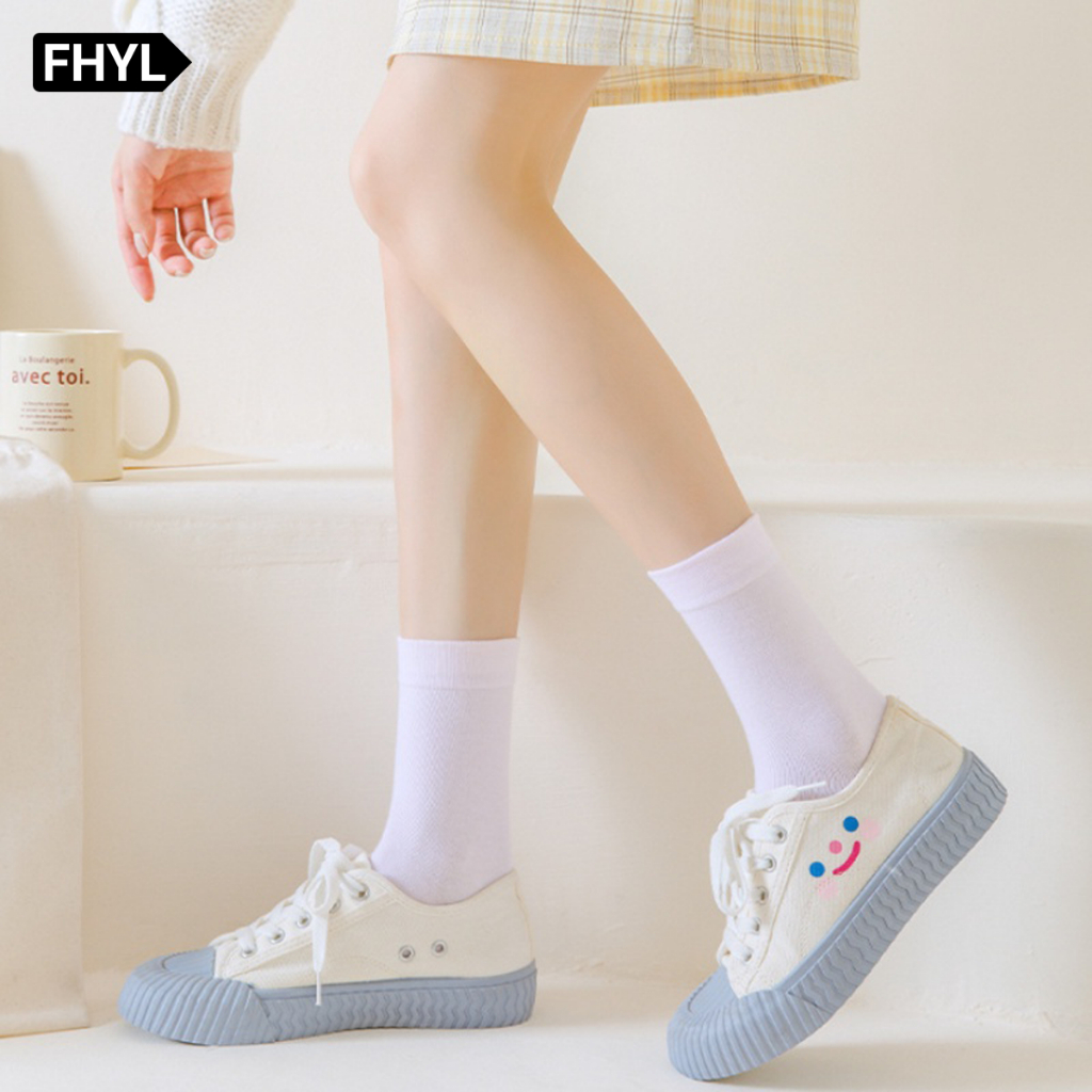 FHYL ถุงเท้าลําลอง ผ้าฝ้ายแท้ สีพื้น เข้ากับทุกการแต่งกาย แฟชั่นฤดูร้อน สไตล์เกาหลี สําหรับสตรี