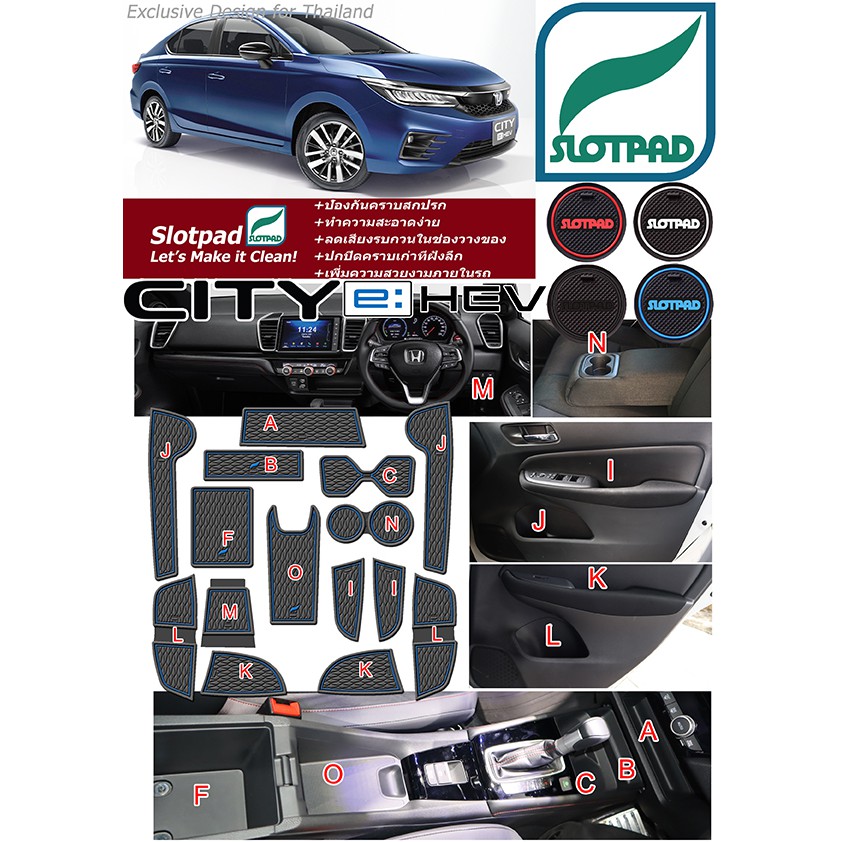 SLOTPAD แผ่นรองหลุม HONDA CITY eHEV Hybrid ตรงรุ่นรถไทย ยางรองแก้ว ยางรองหลุม ที่รองแก้ว ฮอนด้าซิตี้