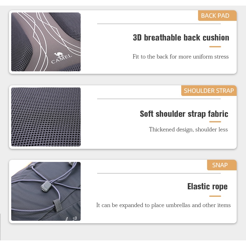 Camel กระเป๋าเป้สะพายหลัง กันน้ํา สําหรับเดินทาง เดินป่า กลางแจ้ง