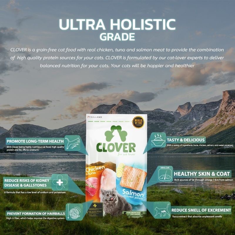 (1.5kg) Clover อาหารแมว โฮลิสติก เกรนฟรี (EXP6/26) สำหรับแมวทุกช่วงวัย ไม่มีการใช้ธัญพืช โซเดียมต่ำ ไฟเบอร์สูง