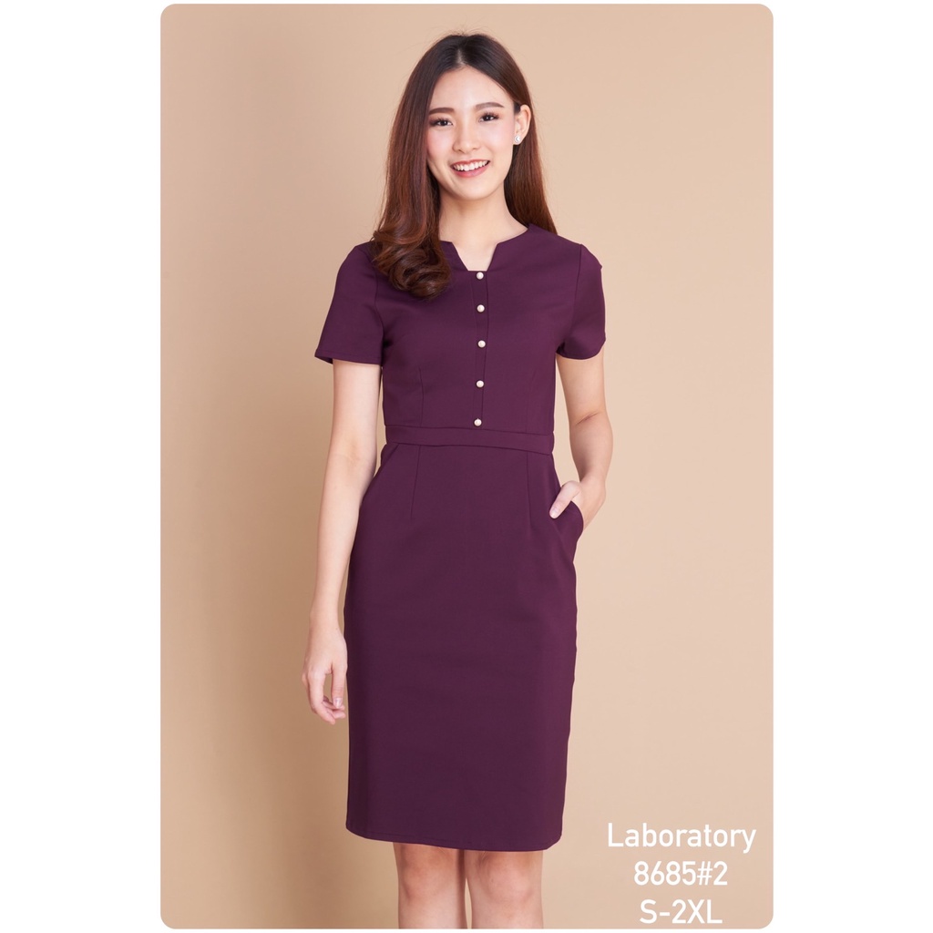 *Laboratory* เดรส 8685# ทรงคอยูแต่งกระดุมมุก กระโปรงทรงสอบ
