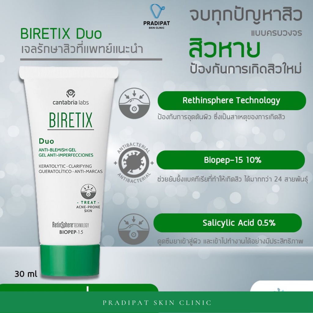 BIRETIX Duo Anti-Blemish Gel 30 ml เจลบำรุงผิวหน้ารักษาสิว (มีจำหน่ายเฉพาะในโรงพยาบาลและคลินิก) จำหน่ายโดยคลินิกผิวหนัง