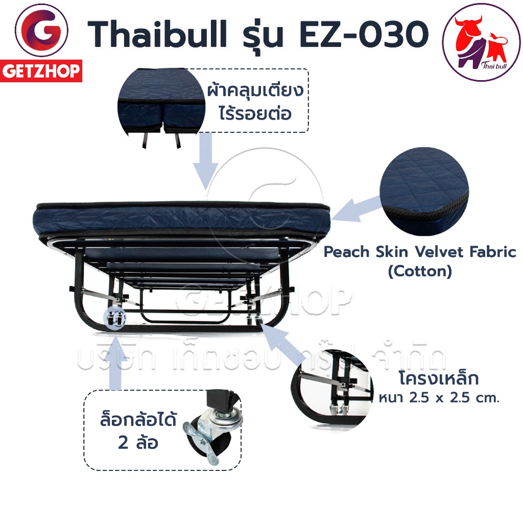Thaibull เตียงนอน 3ฟุต เตียงพับได้พร้อมเบาะ ผ้าคลุมเตียงไม่มีรอยต่อ Reinforce folding bed รุ่นEZ-030