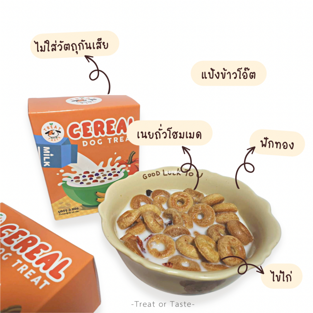 Treat or Taste คุกกี้ซีเรียล ขนมสุนัข ขนมหมา (ไม่มีเนื้อสัตว์) น้องแพ้ไก่ทานได้ ทานง่าย ไม่ปรุงรส Dog Treat Cereal