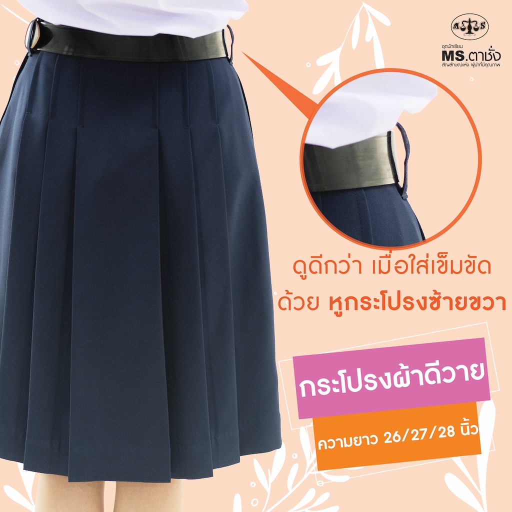 กระโปรงDY6จีบยาว 26/27/28 นิ้ว สีกรมเข้ม ผ้ามัน ผ้าดีวายรุ่น premium กระโปรงนักเรียนมัธยม MS ตาชั่ง
