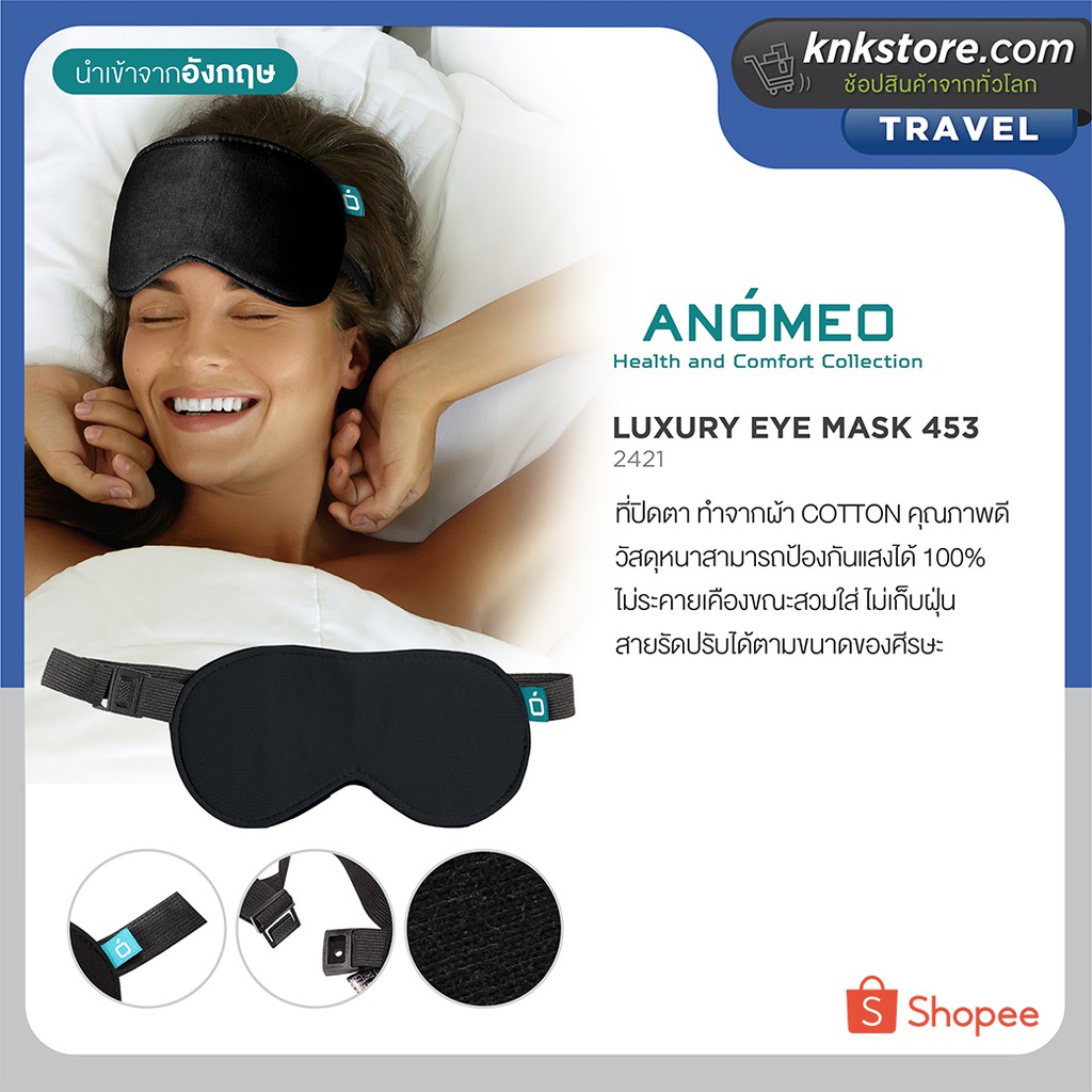 ANOMEO 2421 ผ้าปิดตาคอตตอนสีดำ รุ่น Padded Eye Mask
