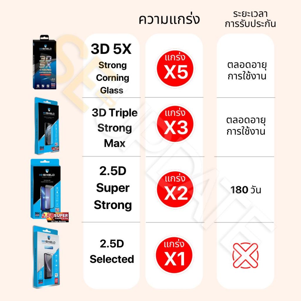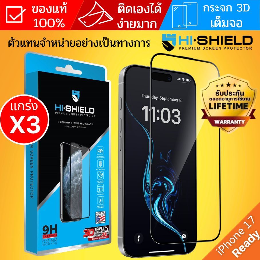 (ส่งทันที) ฟิล์มกระจก HiShield 3D Triple STRONG MAX สำหรับ iPhone 17 / 16 / 15 / 14 / 13 / 12 / 11 / Air Plus / Pro Max