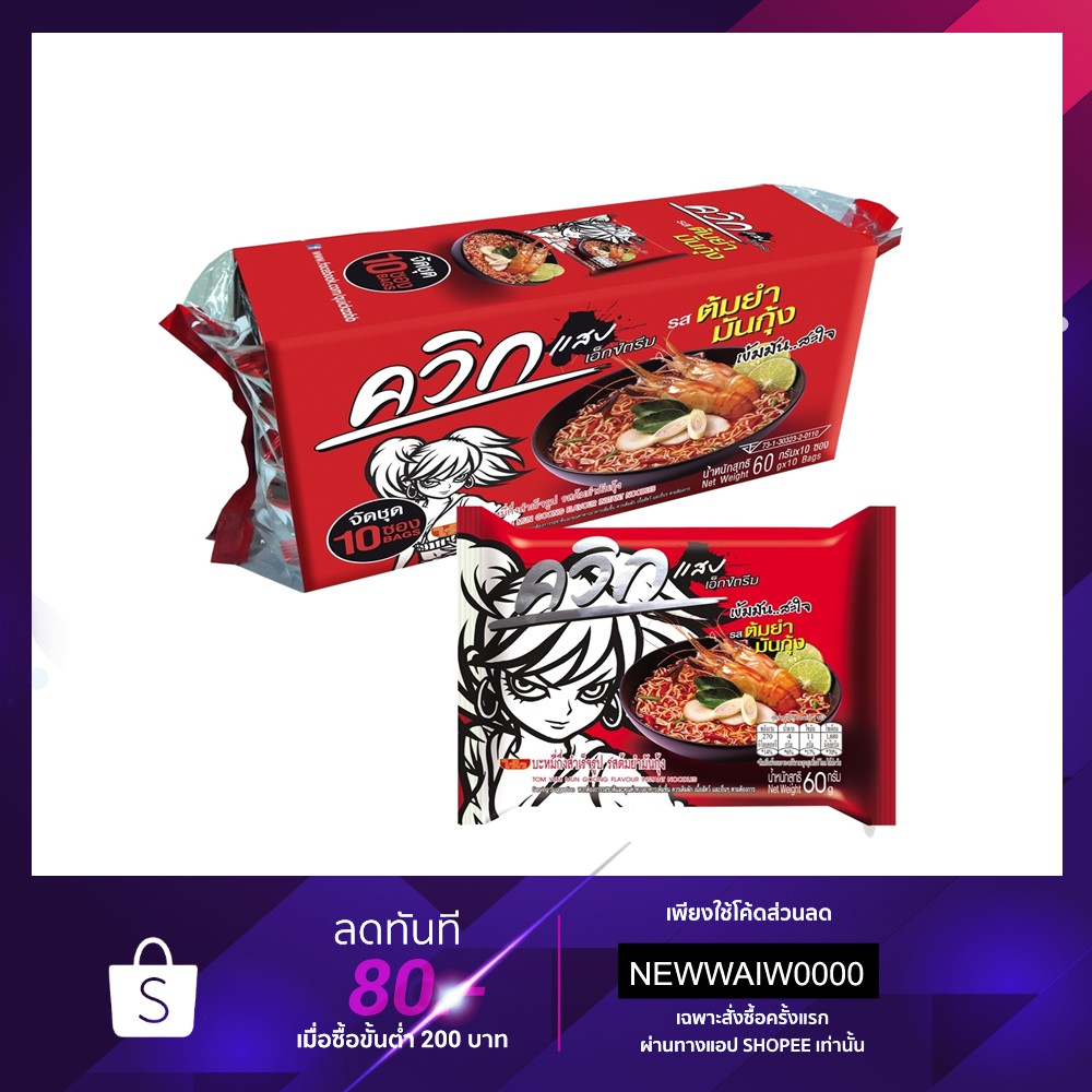 ไวไว บะหมี่ควิก รสต้มยำ(มันกุ้ง) แพ็ค 10ซอง