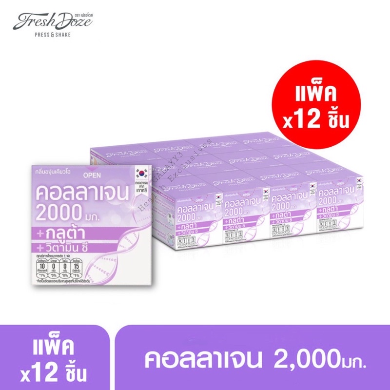 Fresh Doze เฟรชโดส เพรสแอนด์เชค คอลลาเจน2000 กลูต้า กลิ่นองุ่นเคียวโฮ 3.5กรัมxแพ็ก6&12กล่อง(ม่วง)