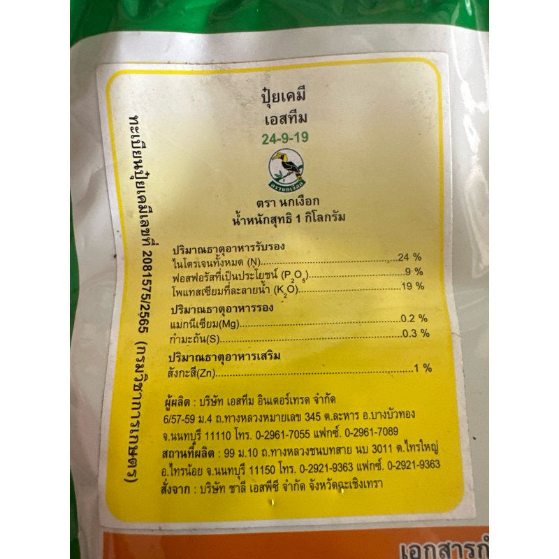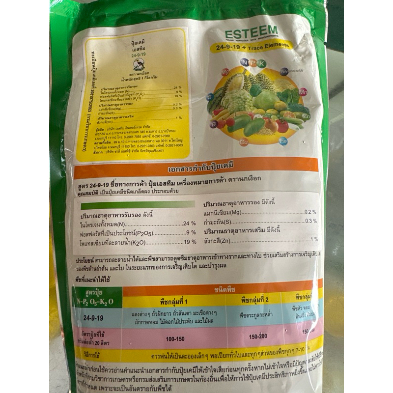 ปุ๋ยเกล็ด เอสทีม 24-9-19 ขนาด 1kg เร่งผลใหญ่ ใบสมบูรณ์