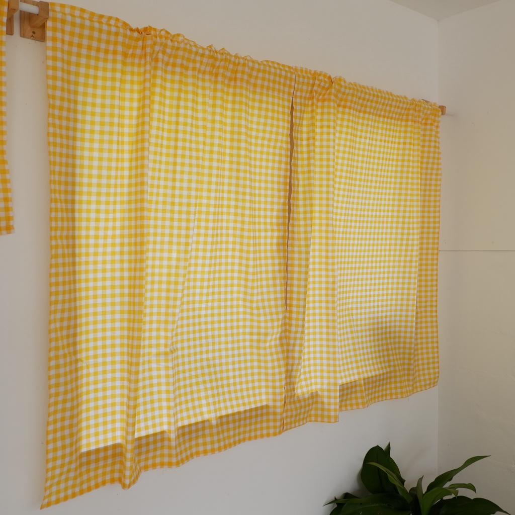ผ้าม่านลายตาราง สีขาว-เหลืองหวาน มินิมอลสไตล์ เนื้อผ้า cotton ตัดเย็บปราณีต สวยงามน่ารักมาก
