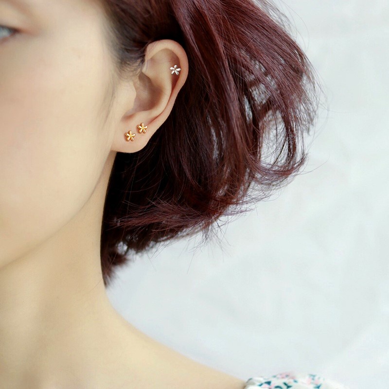 [YY] ต่างหูสตั๊ด แบบเกลียว รูปดอกไม้ ขนาดเล็ก สําหรับผู้หญิง