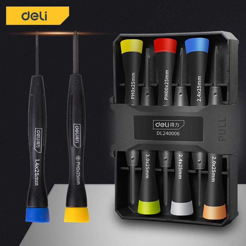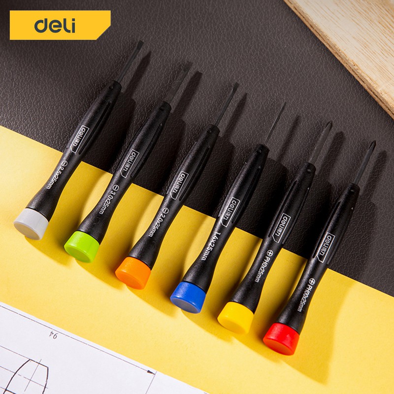 Deli ไขควงเล็ก ไขควงซ่อมนาฬิกา ไขควงนาฬิกา ชุดไขควงซ่อมนาฬิกา ไขควงอเนกประสงค์ ไขควงงานละเอียด 6 ตัวชุด 6 สี