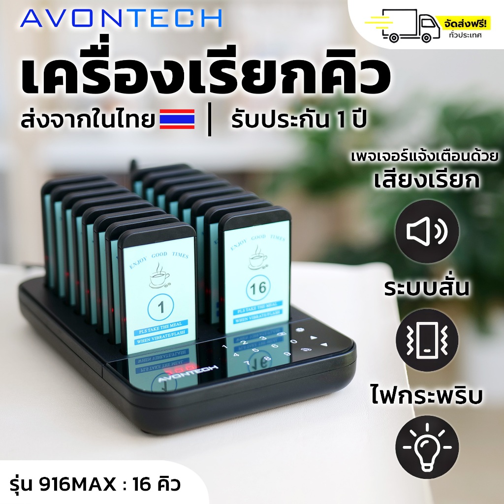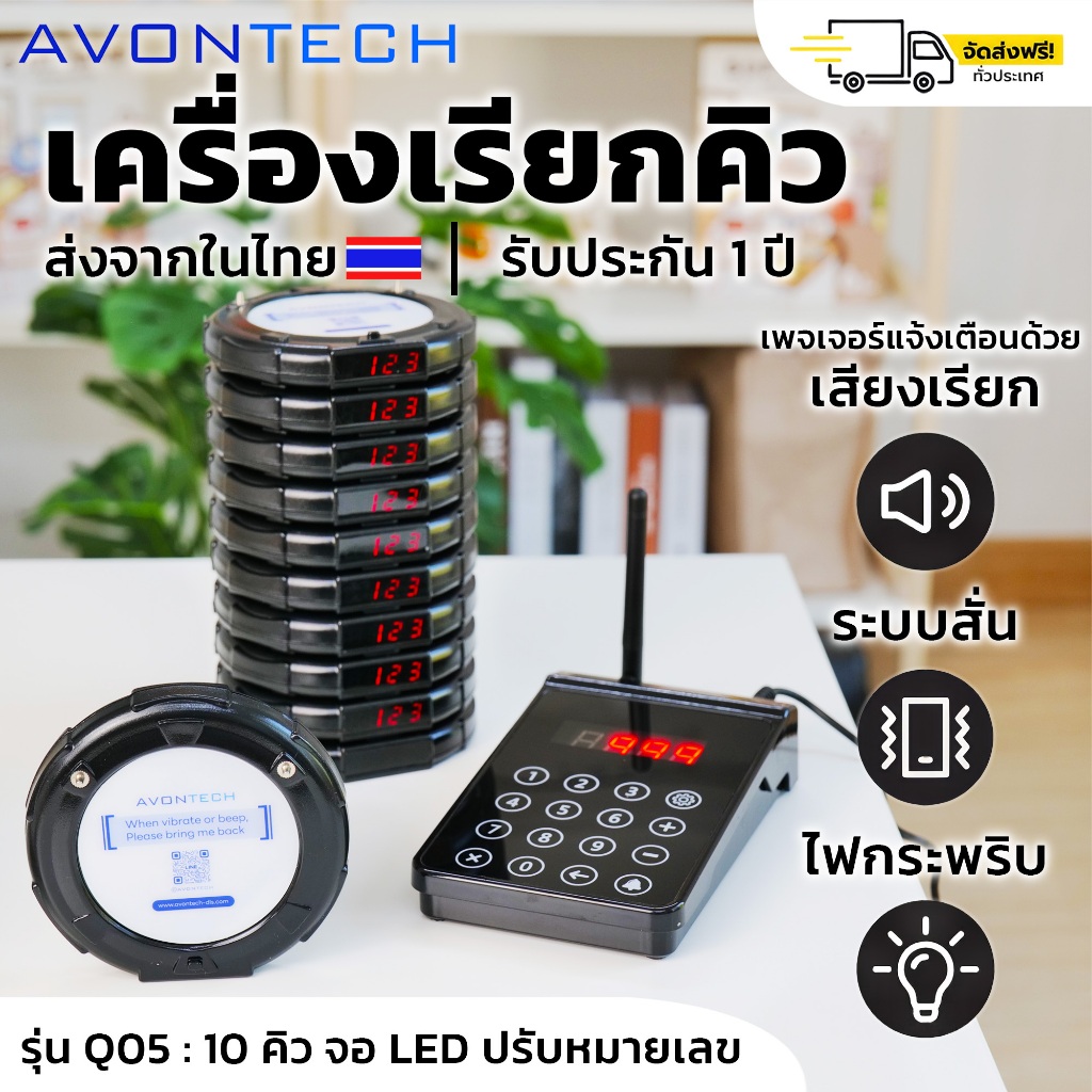 🇹🇭e-Tax/ฟรีค่าส่ง🇹🇭 AVONTECH เครื่องเรียกคิวไร้สาย 10-30 คิว เพจเจอร์เรียกคิว ระบบเรียกคิว ตัวเรียกคิว รับคิว