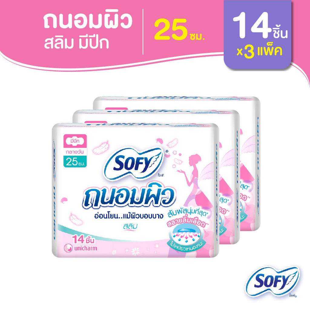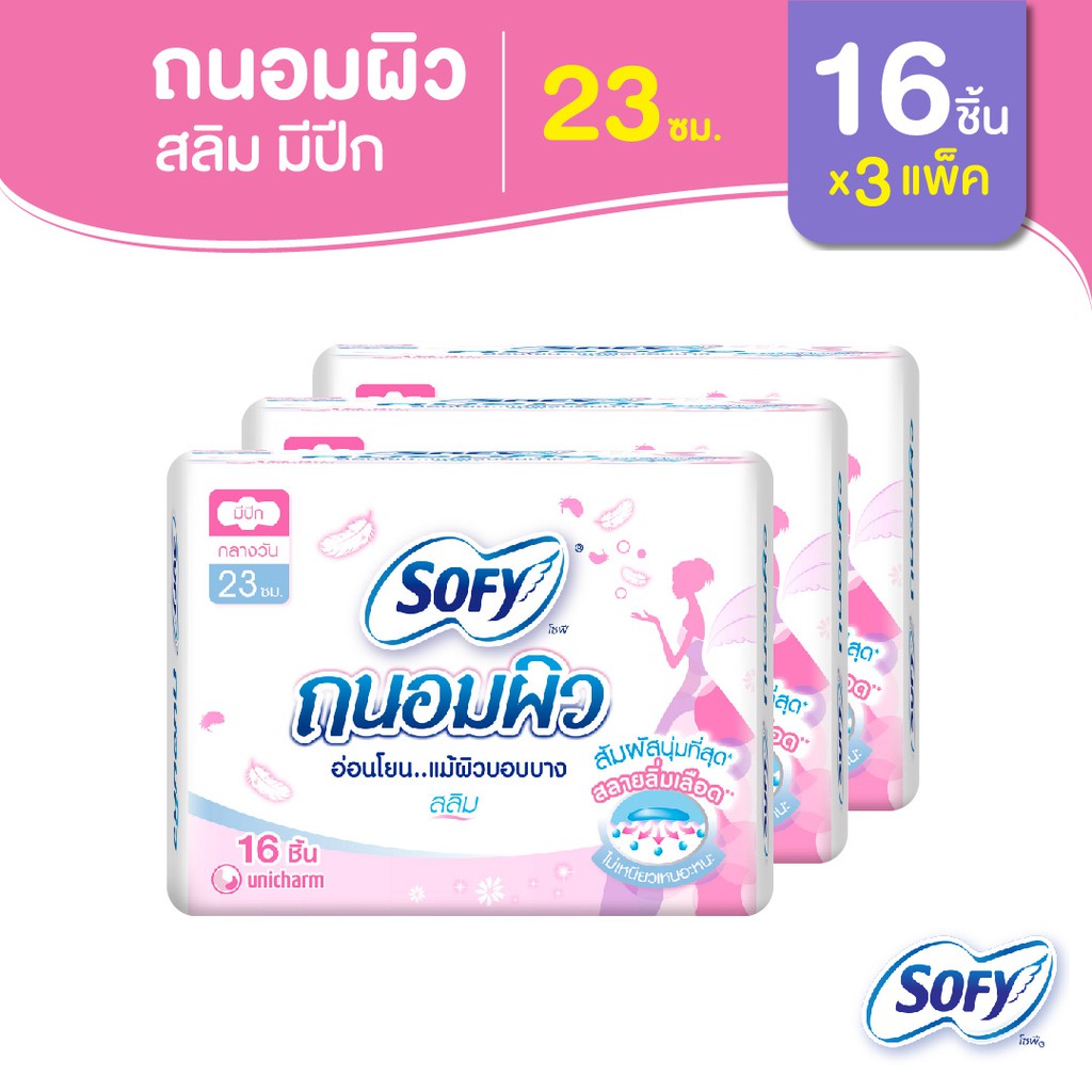 [เลือกความยาว] Sofy โซฟี ถนอมผิว สลิม ผ้าอนามัยสำหรับกลางวัน/กลางคืน แบบมีปีก 23 - 35 ซม. (3 แพ็ค)