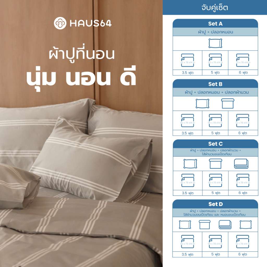 Haus64 ชุดผ้าปูที่นอน 6 ฟุต เซ็ต A,B,C,D ผ้าปูคอตตอน100% ทอ 800 เส้นด้าย