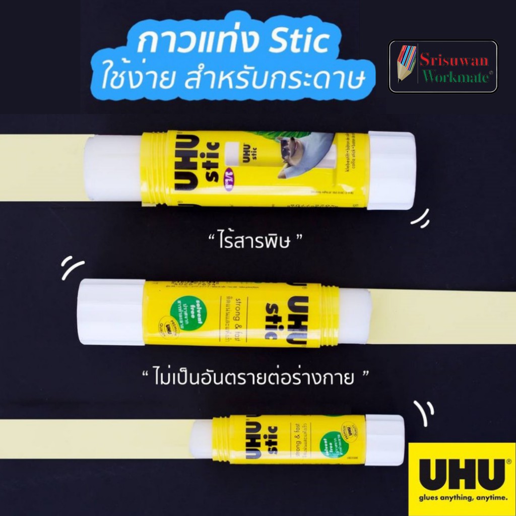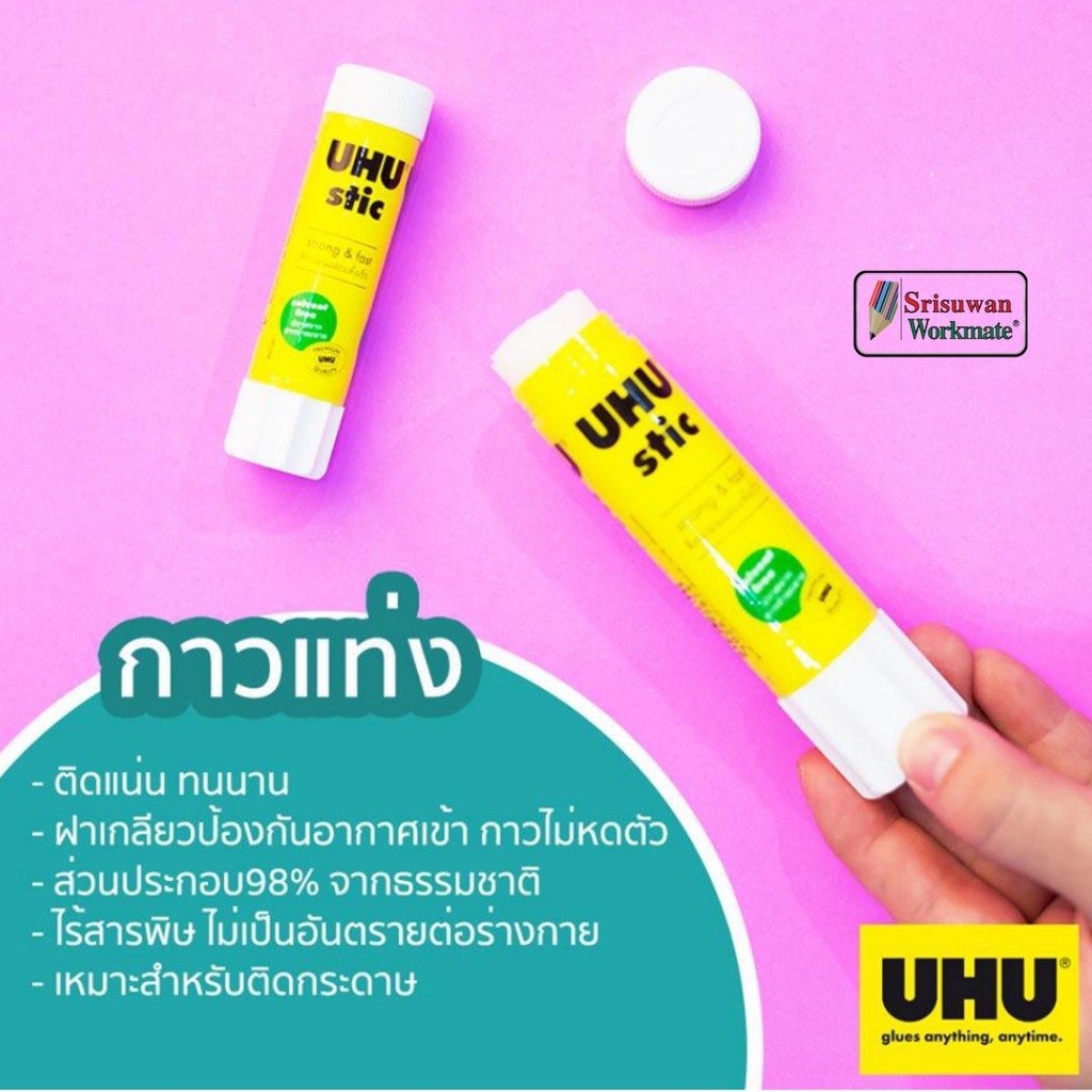 กาวแท่งยูฮู(UHU) ขนาด 8.2/21/40กรัม ใช้ง่ายติดทน ไม่ซึม ไร้สารพิษ กาวแท่งที่ดีที่สุด แท่งหมุนเปิด-ปิด เก็บรักษาง่าย