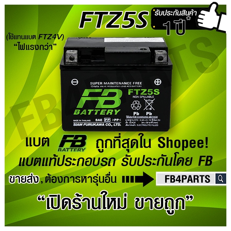 FB FTZ5S WAVE CLICK SONIC-มือ (12V 3.5AH) ยกลัง 10 ลูก