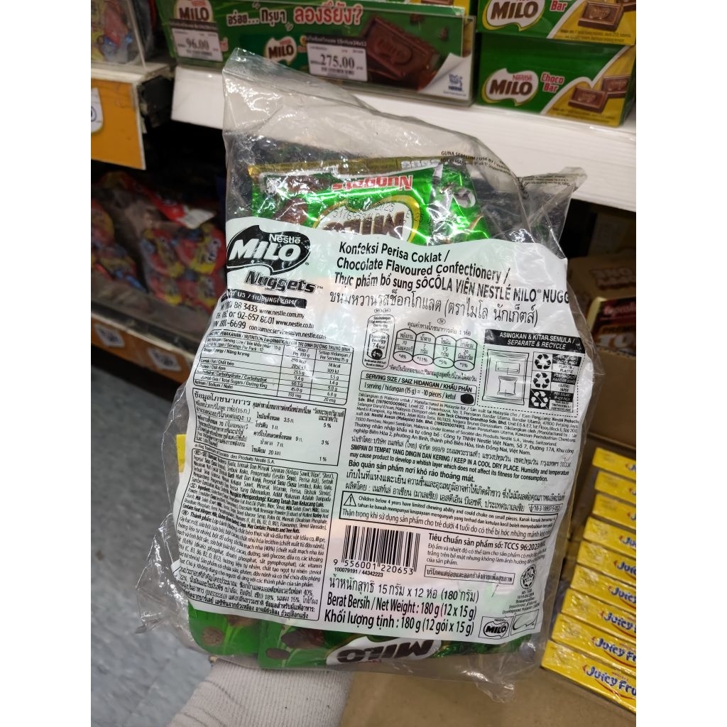 [ 2 แพ็ค ] Milo ไมโลนักเก็ตส์ ช็อกโกแลต สายแขวน 180กรัม (15กรัม x 12ห่อ)