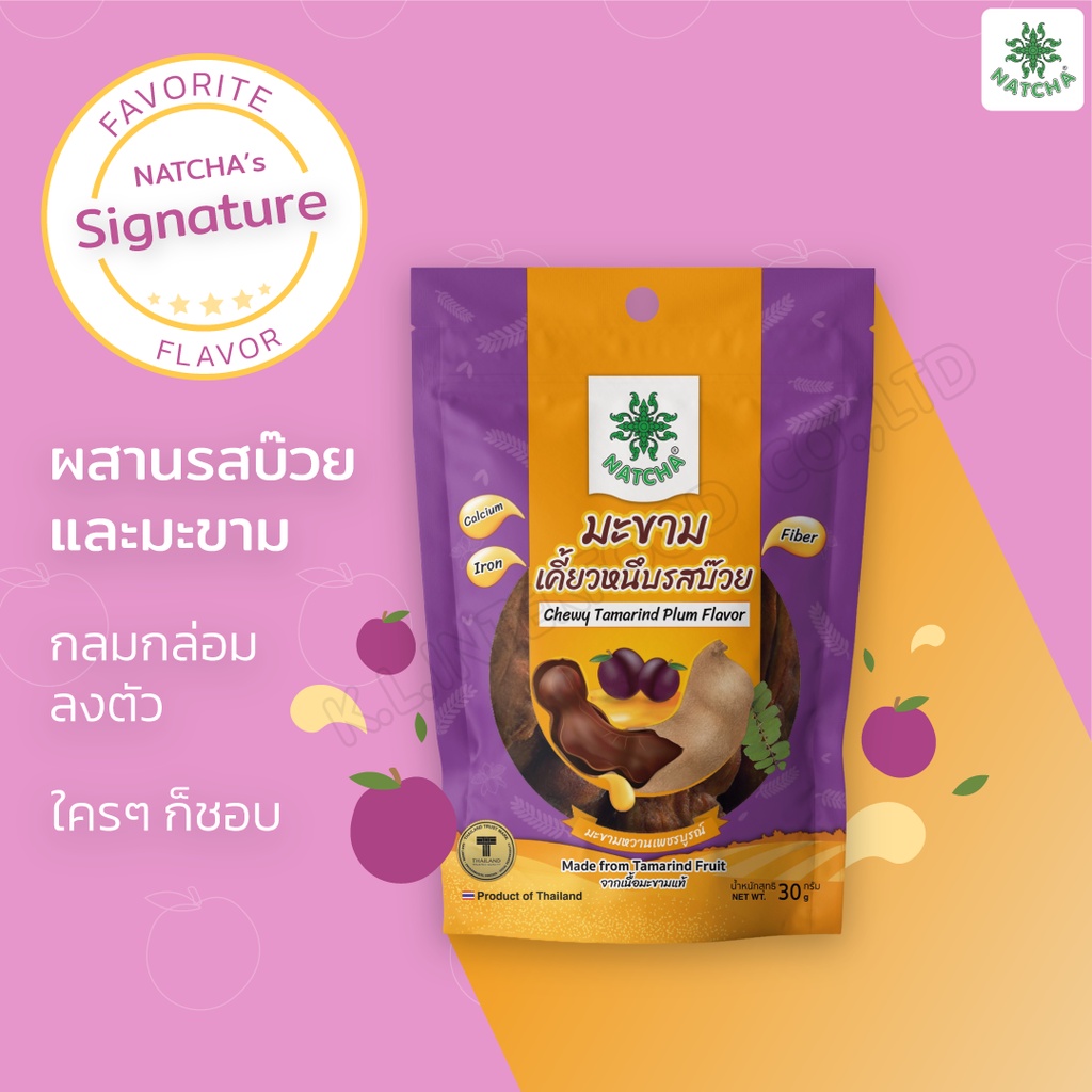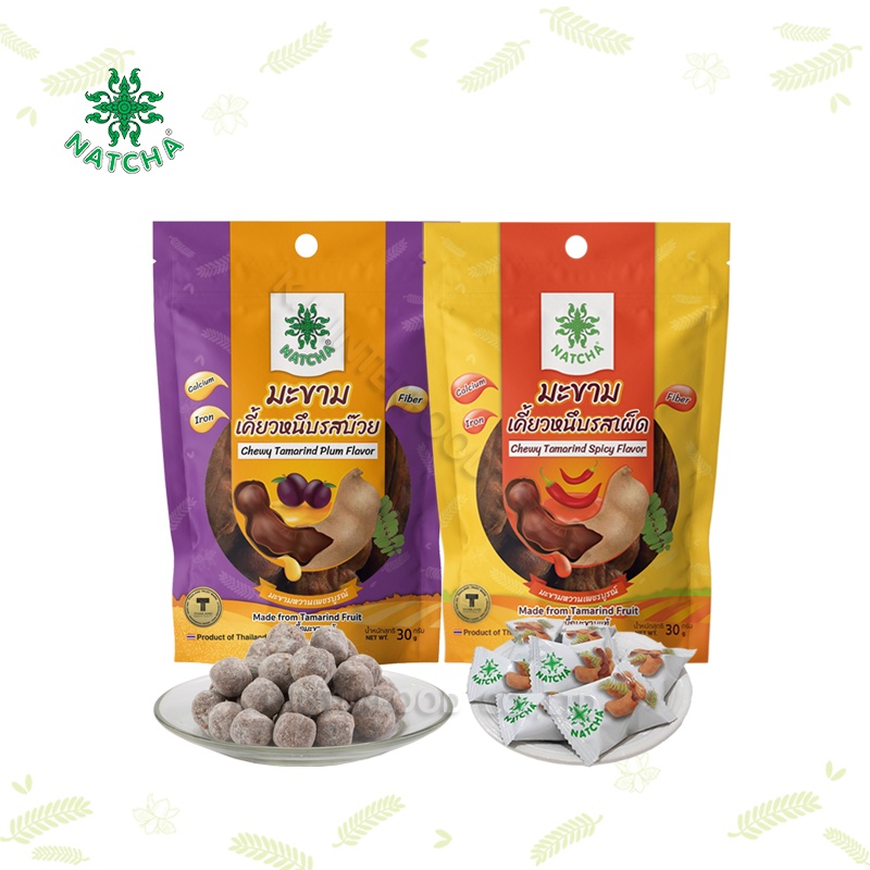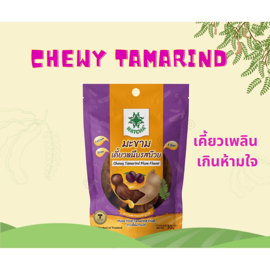 นัชชา 👩🌾 มะขามเคี้ยวหนึบ รสบ๊วย 30 g. เนื้อมะขามเข้มเต็มๆคำ หอมกลิ่นบ๊วย ชนิดซอง
