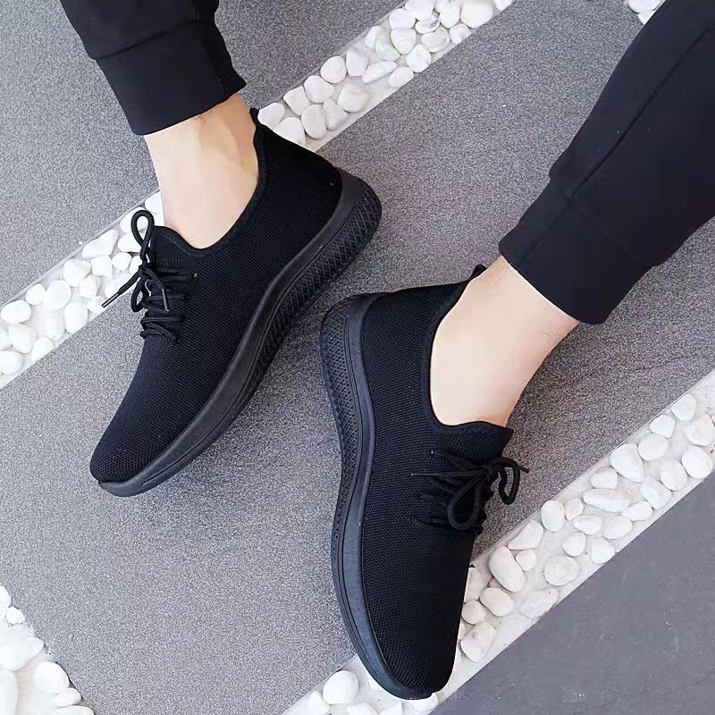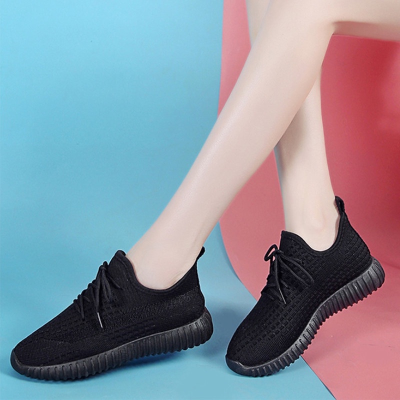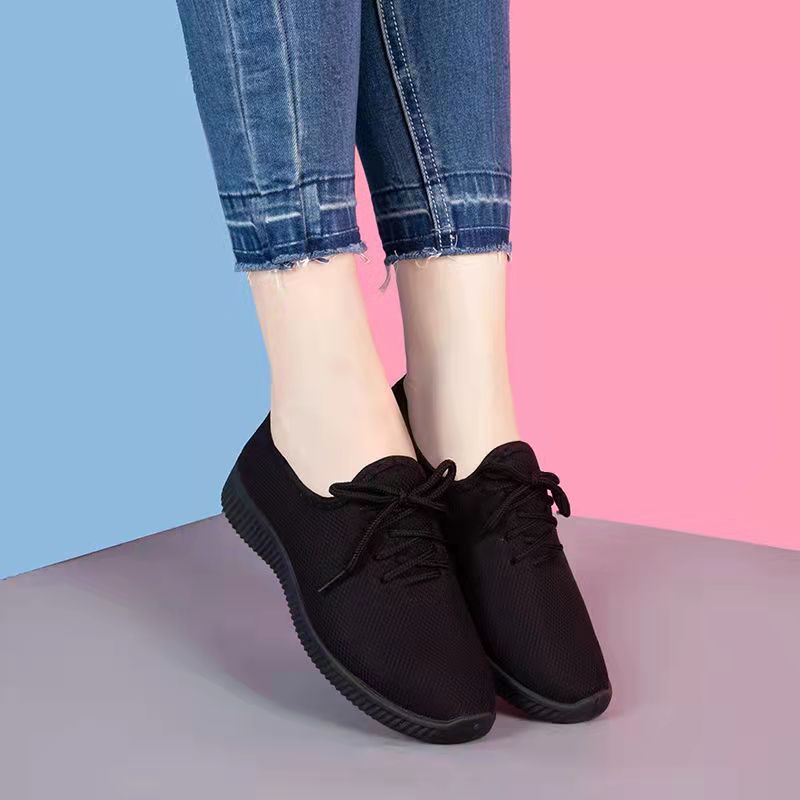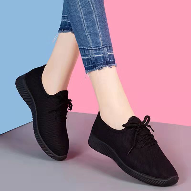สีดำล้วน รองเท้าผ้าใบ ใส่ทน รองเท้าผ้าใบผู้หญิงรุ่ น้ำหนักเบา มีความยืดหยุ่น ปรับสมดุลกับเท้าของเรา