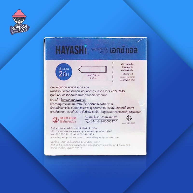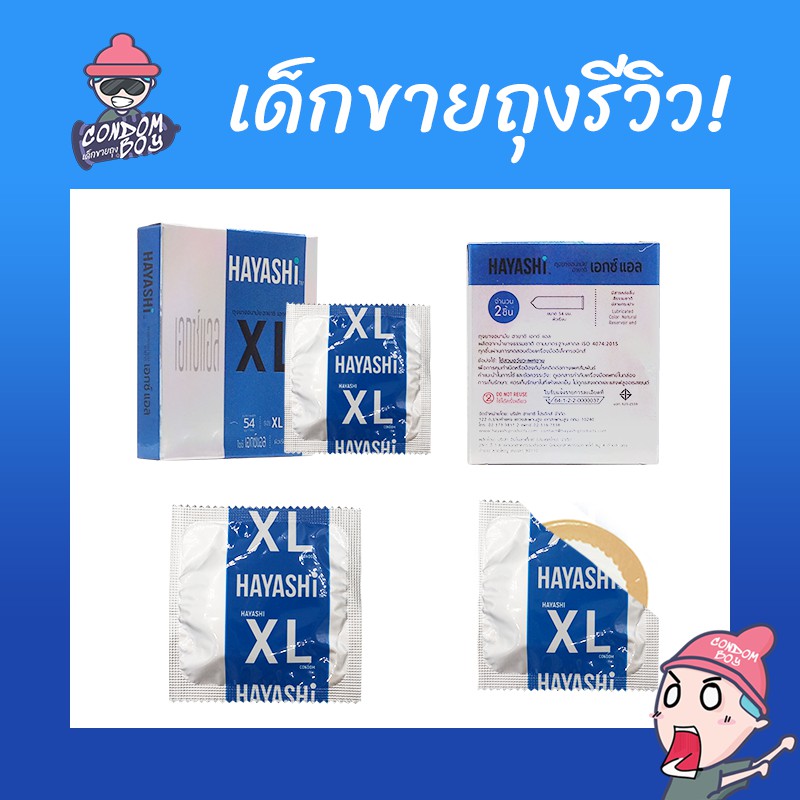 Hayashi XL ถุงยางอนามัย ฮายาชิ เอกซ์แอล ผิวเรียบ สวมใส่ง่าย ใหญ่พิเศษ ขนาด 54 mm. (6 กล่อง)